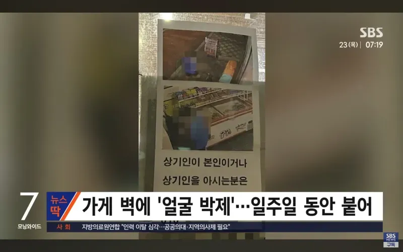 절도범으로 간주하고 무인점포 사장이 초등학생 CCTV 사진을 벽에 박제...