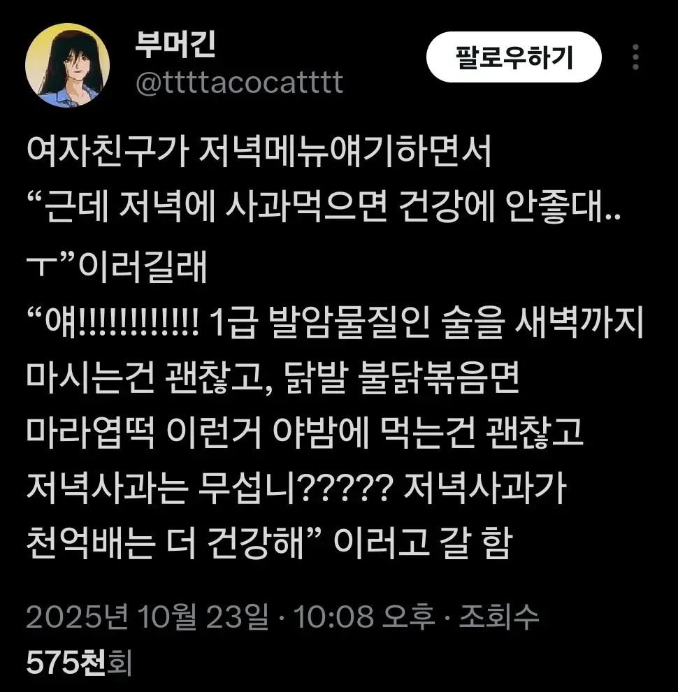 저녁에 사과 먹으면 안좋다던데? 최미 쪽지보내기자기소개아이디로 검색전체게시물 10-27 1,888 회 0 건 하긴..humoruniv 저녁에 사과를 먹으면 건강에 안 좋다더라. 목록 이메일 주소는 공개되지 않습니다. 댓글 * 이름 * 비밀번호 * 비밀글 사용 제목 글쓴이 조회 날짜 연차를 전혀 쓰지 않는다는 조폐공사 근황 백림 쪽지보내기자기소개아이디로 검색전체게시물 1,800 0 25-10-29 백림 쪽지보내기자기소개아이디로 검색전체게시물 1,800 25-10-29 문신 질문받은 격투기 선수.jpg 옆집총각 쪽지보내기자기소개아이디로 검색전체게시물 2,030 0 25-10-29 옆집총각 쪽지보내기자기소개아이디로 검색전체게시물 2,030 25-10-29 아인슈타인도 예측못한 천체현상.jpg 몽비쥬 쪽지보내기자기소개아이디로 검색전체게시물 2,022 0 25-10-28 몽비쥬 쪽지보내기자기소개아이디로 검색전체게시물 2,022 25-10-28 아이스크림 가게 키오스크 앞에서 쩔쩔매는 할머니를 봤다. 달콤별 쪽지보내기자기소개아이디로 검색전체게시물 2,035 0 25-10-28 달콤별 쪽지보내기자기소개아이디로 검색전체게시물 2,035 25-10-28 그 많던 신라의 황금들은 전부 어디로 갔을까? 류훈아 쪽지보내기자기소개아이디로 검색전체게시물 2,013 0 25-10-28 류훈아 쪽지보내기자기소개아이디로 검색전체게시물 2,013 25-10-28 피임약을 끊으면 남친과 생기는 일.jpg 금단비 쪽지보내기자기소개아이디로 검색전체게시물 1,848 0 25-10-28 금단비 쪽지보내기자기소개아이디로 검색전체게시물 1,848 25-10-28 실시간 트위터에서 난리 난 내용 백림 쪽지보내기자기소개아이디로 검색전체게시물 1,735 0 25-10-28 백림 쪽지보내기자기소개아이디로 검색전체게시물 1,735 25-10-28 차량 충돌실험 어린돼지로 매달아놓은 중국 ㄷㄷ.jpg 몽비쥬 쪽지보내기자기소개아이디로 검색전체게시물 1,875 0 25-10-28 몽비쥬 쪽지보내기자기소개아이디로 검색전체게시물 1,875 25-10-28 일본 난치병 어린이가 한국어를 배우는 이유.jpg 도레미 쪽지보내기자기소개아이디로 검색전체게시물 1,950 0 25-10-28 도레미 쪽지보내기자기소개아이디로 검색전체게시물 1,950 25-10-28 또 험한거 만든 영국 최미 쪽지보내기자기소개아이디로 검색전체게시물 1,864 0 25-10-28 최미 쪽지보내기자기소개아이디로 검색전체게시물 1,864 25-10-28 연예계 최악의 노예계약.jpg 밝은횃불 쪽지보내기자기소개아이디로 검색전체게시물 2,019 0 25-10-28 밝은횃불 쪽지보내기자기소개아이디로 검색전체게시물 2,019 25-10-28 돈은 없지만 마음이 부자인 여자 재미난도시락 쪽지보내기자기소개아이디로 검색전체게시물 1,926 0 25-10-28 재미난도시락 쪽지보내기자기소개아이디로 검색전체게시물 1,926 25-10-28 대장암 수술 후 똥이 성기에서 나오는 여자 달콤별 쪽지보내기자기소개아이디로 검색전체게시물 2,008 0 25-10-28 달콤별 쪽지보내기자기소개아이디로 검색전체게시물 2,008 25-10-28 곧 떠날 거 같은 지하철 타는 꿀팁 도레미 쪽지보내기자기소개아이디로 검색전체게시물 1,925 0 25-10-28 도레미 쪽지보내기자기소개아이디로 검색전체게시물 1,925 25-10-28 자기야 오늘 아쿠아리움 휴무래 ㅜ 지니까꿍 쪽지보내기자기소개아이디로 검색전체게시물 1,989 0 25-10-28 지니까꿍 쪽지보내기자기소개아이디로 검색전체게시물 1,989 25-10-28 출근했는데 인사를 아무도 안받아줘.jpe 얼음사이다 쪽지보내기자기소개아이디로 검색전체게시물 2,119 0 25-10-28 얼음사이다 쪽지보내기자기소개아이디로 검색전체게시물 2,119 25-10-28 육군, 베레모 단계적 폐지 추진…전투모를 기본 군모로 차하영 쪽지보내기자기소개아이디로 검색전체게시물 1,804 0 25-10-28 차하영 쪽지보내기자기소개아이디로 검색전체게시물 1,804 25-10-28 남자든 여자든 결혼은 20대때 해야하는 이유 차하영 쪽지보내기자기소개아이디로 검색전체게시물 1,975 0 25-10-28 차하영 쪽지보내기자기소개아이디로 검색전체게시물 1,975 25-10-28 요르구트를 사고싶었던 어떤 일본인의 일기 신림사 쪽지보내기자기소개아이디로 검색전체게시물 1,946 0 25-10-28 신림사 쪽지보내기자기소개아이디로 검색전체게시물 1,946 25-10-28 요즘 늘고 있는 공원 민폐 도레미 쪽지보내기자기소개아이디로 검색전체게시물 1,989 0 25-10-28 도레미 쪽지보내기자기소개아이디로 검색전체게시물 1,989 25-10-28 광기의 직장인.jpg 도레미 쪽지보내기자기소개아이디로 검색전체게시물 1,965 0 25-10-27 도레미 쪽지보내기자기소개아이디로 검색전체게시물 1,965 25-10-27 "밥 먹고 바로 누우세요" 금단비 쪽지보내기자기소개아이디로 검색전체게시물 2,101 0 25-10-27 금단비 쪽지보내기자기소개아이디로 검색전체게시물 2,101 25-10-27 김혜수가 말하는 과자 먹고 살쪘을때 특징 최미 쪽지보내기자기소개아이디로 검색전체게시물 2,001 0 25-10-27 최미 쪽지보내기자기소개아이디로 검색전체게시물 2,001 25-10-27 전신문신을 한 6살짜리 애엄마 황희림 쪽지보내기자기소개아이디로 검색전체게시물 2,065 0 25-10-27 황희림 쪽지보내기자기소개아이디로 검색전체게시물 2,065 25-10-27 ⭐ 저녁에 사과 먹으면 안좋다던데? 최미 쪽지보내기자기소개아이디로 검색전체게시물 1,889 0 25-10-27 최미 쪽지보내기자기소개아이디로 검색전체
