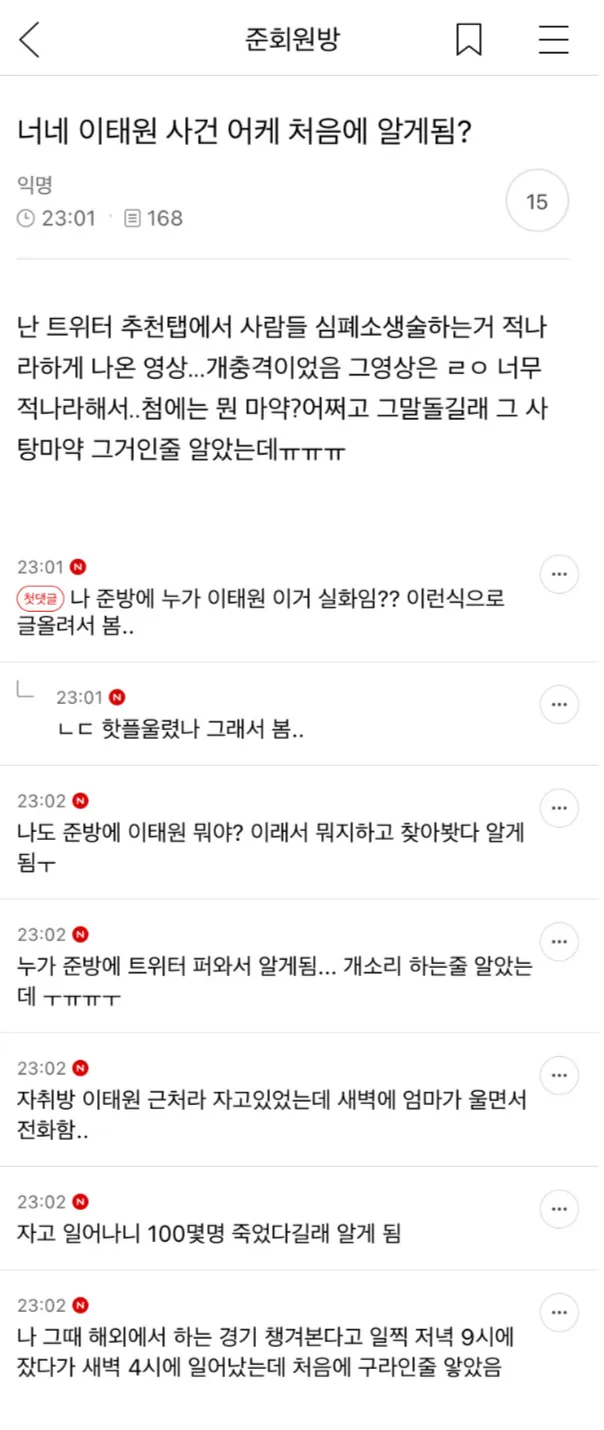 너네 이태원 사건 어케 처음 알게됨?