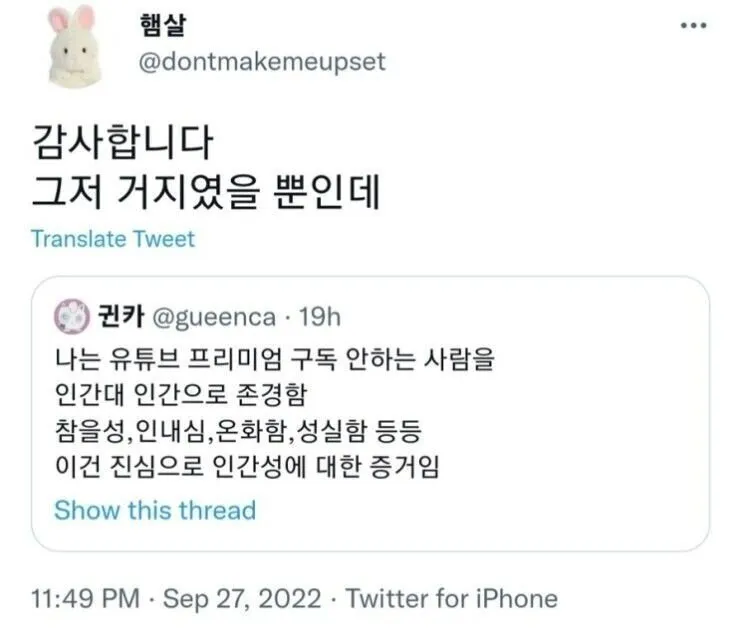 유튜브 프리미엄 안쓰는 사람들 존경함