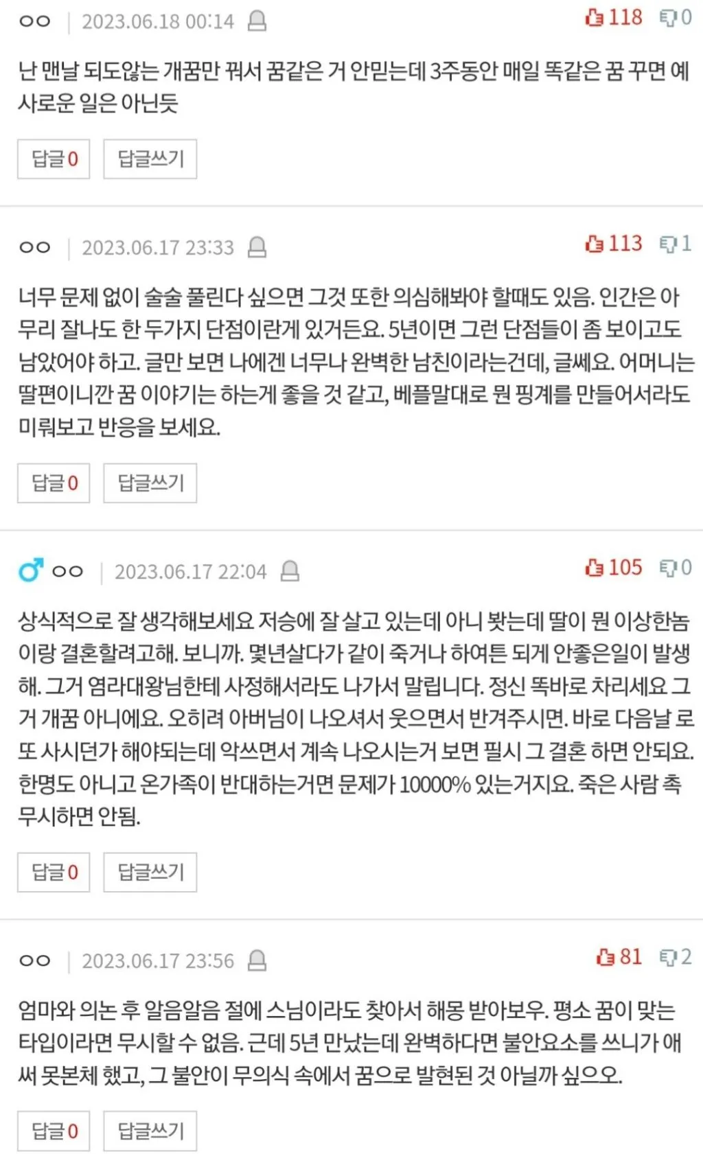 다양한 해석이 가능하지만, 가장 중요한 건 각자 마음속에서 어떤 의미를 찾느냐입니다. 꿈이 말해주는 건 선명한 확신이 아니라, 현재의 불안과 가치관의 충돌일 때가 많으니까요. 누가 옳다고 단정하기보단, 두 사람의 소통과 가족의 분위기를 천천히 가볍게 살펴보는 게 좋지 않을까요? 이 이야기가 우리에게 남기는 여운은, ‘미래를 예민하게 읽는 습관’일지도 모릅니다.