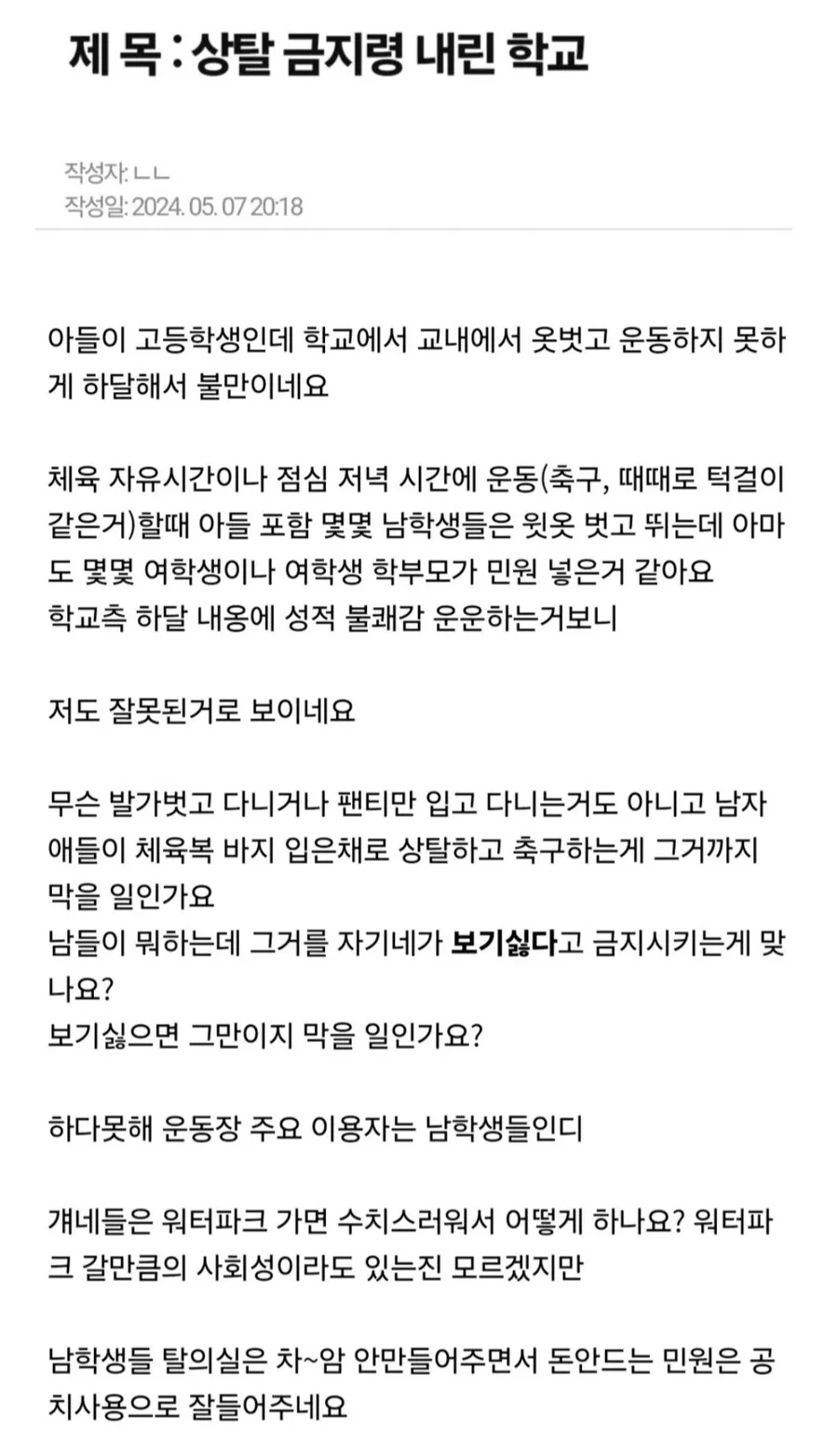 옷 벗고 운동하지 못하게 규제하는 고등학교.jpg