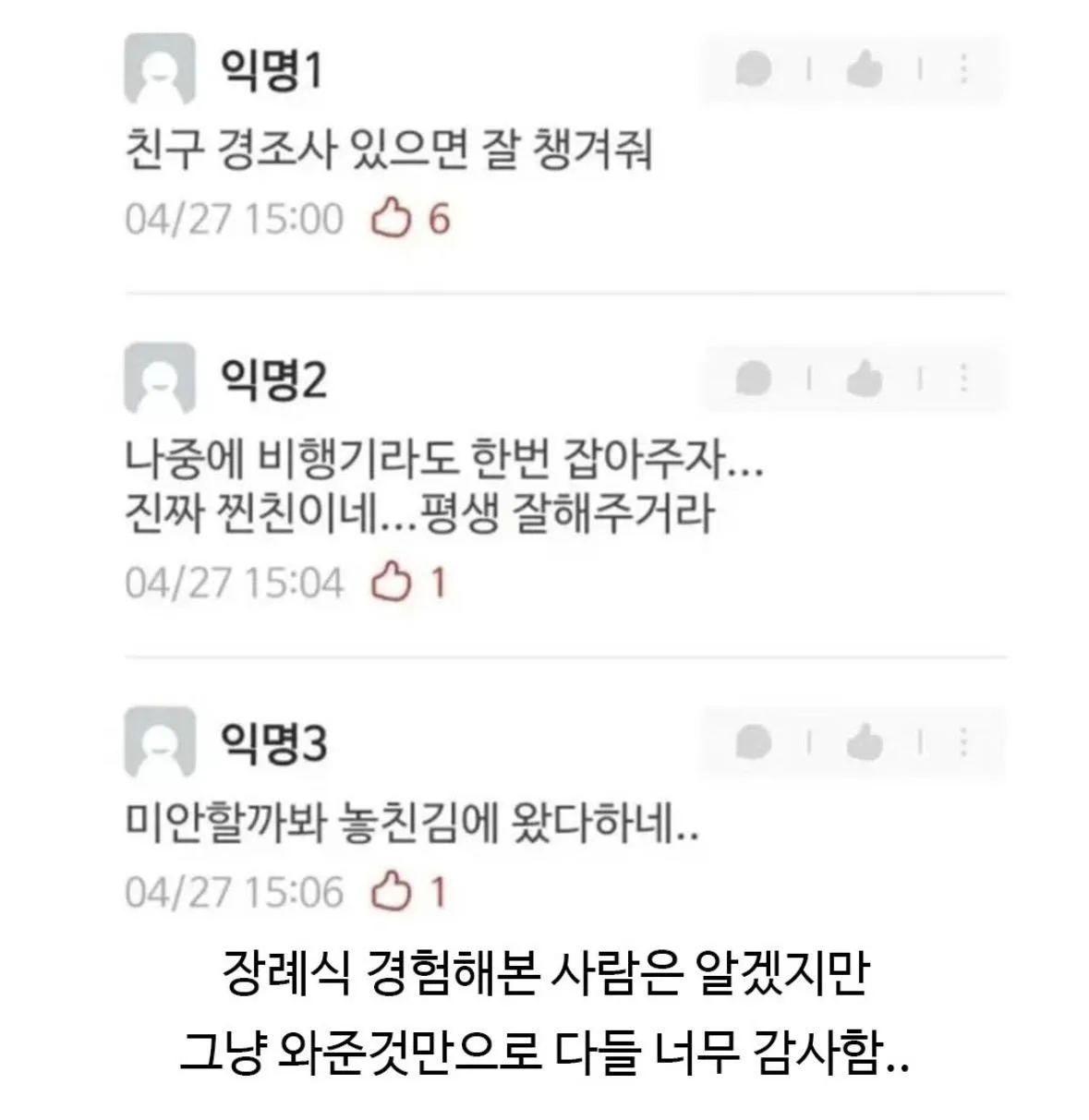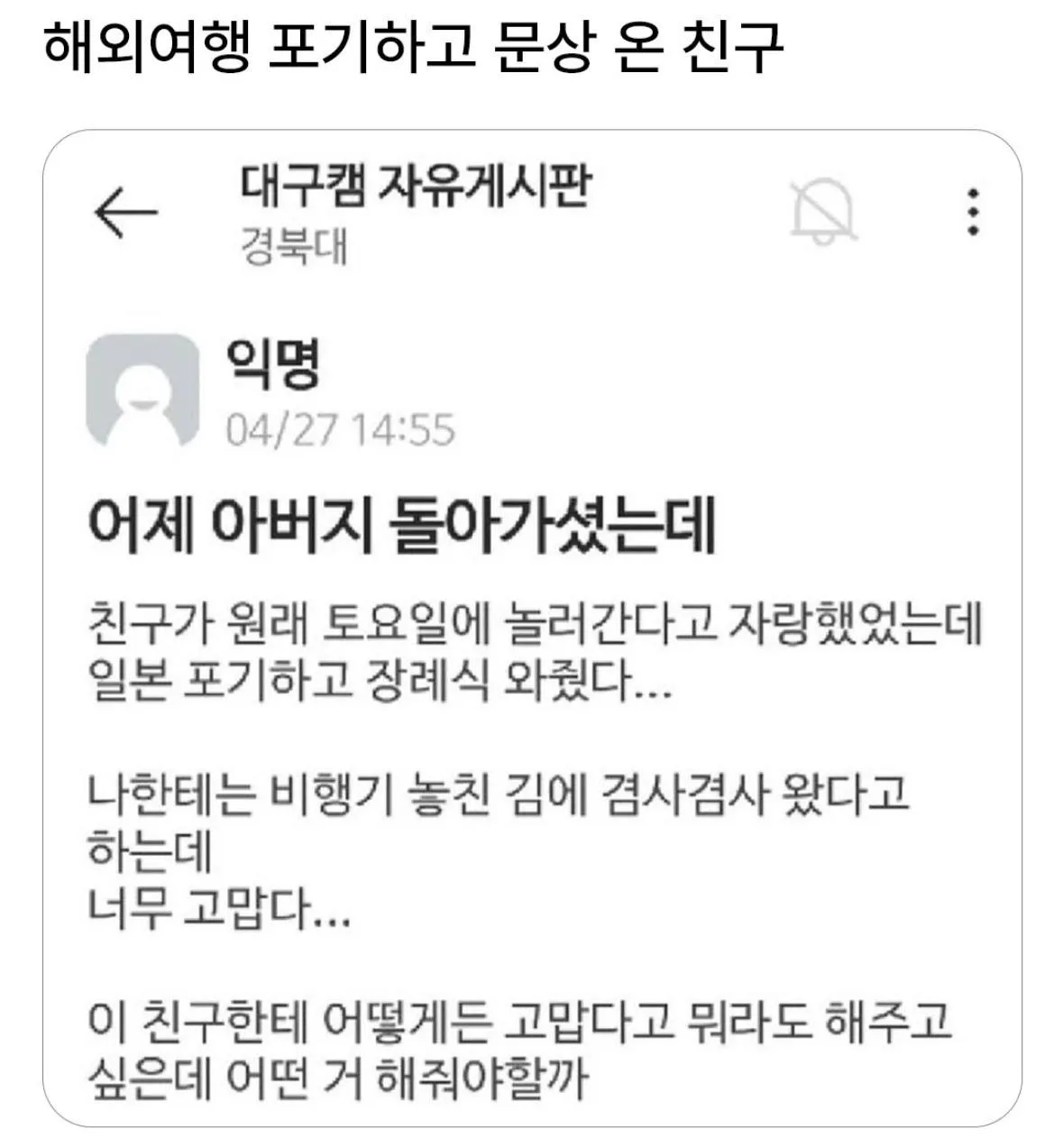 해외여행 포기하고 문상 온 친구