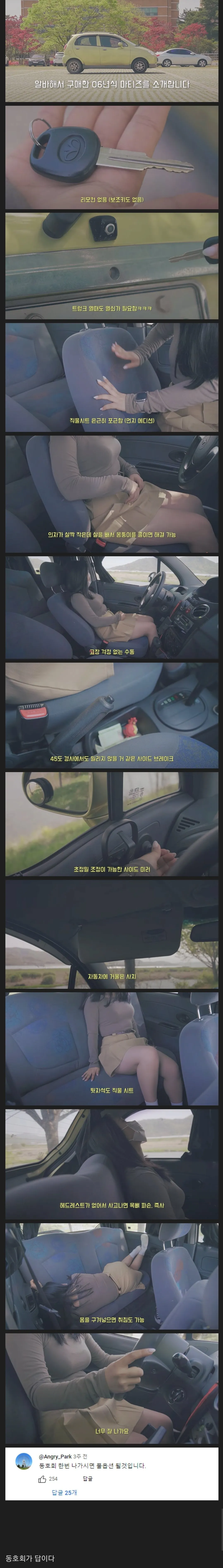 요즘 같은 시대에 중고차 후기를 이렇게 흥미롭게 읽을 수 있을지 의심스러울 때, 06년식 마티즈가 등장합니다. 알바해서 모은 용돈으로 산 이 차는 리모컨도 보조키도 없어, 문을 열 때마다 작은 모험이 시작되는 느낌이죠. 트렁크를 열려면 열쇠가 필요하다는 소문은 사실인지 확인하기 전까지는 끝나지 않는 미스터리처럼 남아있고요. 직물 시트는 생각보다 포근해서, 작은 차의 작은 럭셔리는 오너가 주워 담은 일상의 위로 같기도 해요.