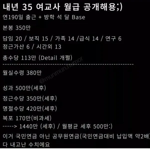 내년에 35살이라는 여교사 월급