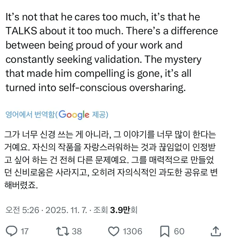 현재 상황은 인터넷 커뮤니티에서 빠르게 재생산되고 있다. 팬들은 발언의 맥락을 서로 재구성하며 이성적 해석과 감정적 반응 사이를 오간다. 여기에 '백인 특권'이나 '엘리트주의' 같은 민감한 이슈까지 불붙으며 논쟁이 커진다. 이 흐름에서 가장 궁금한 포인트는 그가 말하는 '진짜 열정'과 '인정 욕구' 사이의 경계가 어디에 있는가 하는 점일 텐데, 당신은 어떻게 해석하나요?