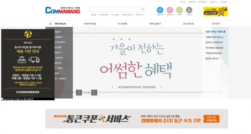 오늘도 컴마왕의 가을 이벤트가 시작되자마자 주문 폭주가 터졌다는 얘기가 들려왔다. 사이트에는 '일시적 작업량 증가에 따른 배송 지연 안내'가 떡하니 떠 있고, 조립PC는 영업일 기준 3-4일, 부품 단품은 1-2일 정도 걸린다는 소문이 머리 속에서 뿜어져 나간다. 이럴 땐 우리 같은 소비자가 얻는 게, 기대감과 기다림 사이의 미묘한 균형뿐이라는 걸 새삼 느낀다. 과연 이 진동은 얼마나 길게 지속될까?