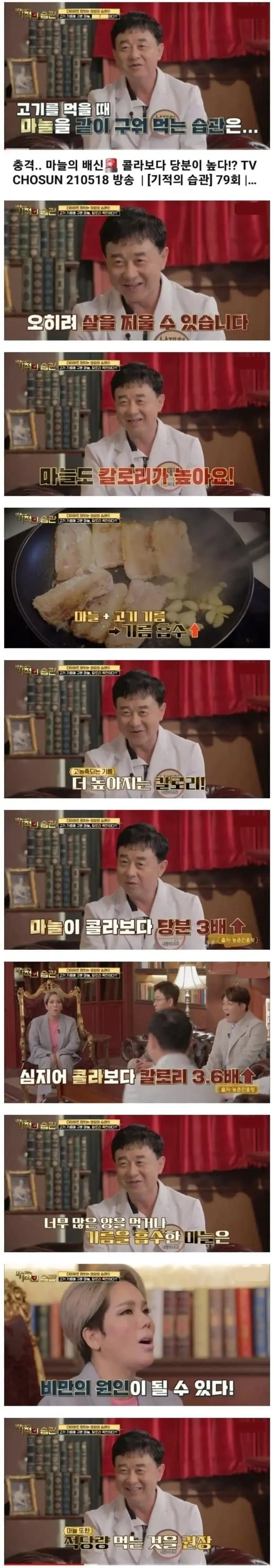 마늘이 고기 기름을 흡수하기 때문에 비만의 원인이 될수있다고,,,