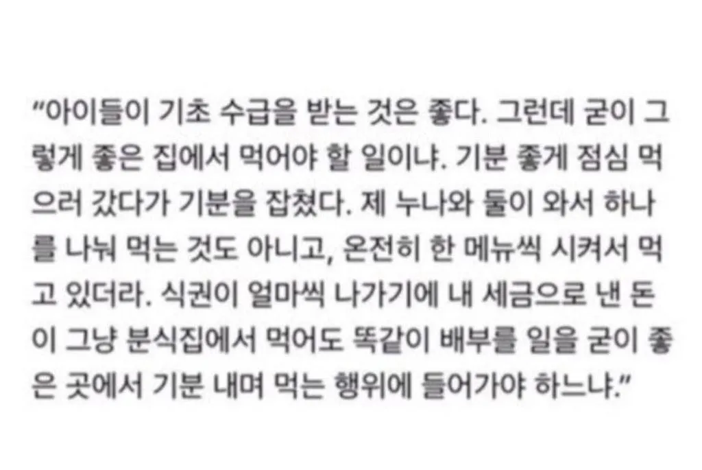 기초수급자 아이가 돈까스 먹는 게 못마땅한 시민