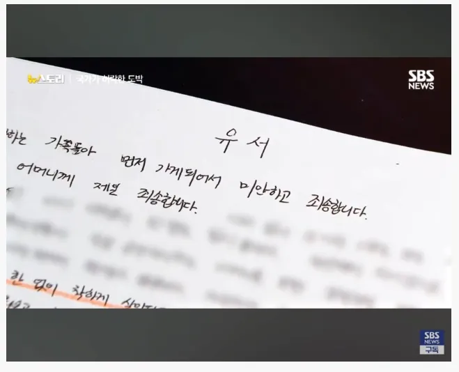 집 안의 배경은 소박했습니다. 아들이 스포츠토토에 빠져들며 생긴 빚과 불편한 진실들, 수십 장의 티켓이 정리대 위에 쌓여 있었고 카드 결제는 매달 늘었습니다. 가족은 진술을 정리하던 중 충격적인 발견을 했다는데, 유서로 보이는 쪽지가 남겨져 있었다고 해요. 그때의 분위기는 무엇보다도 차갑고 조용했습니다. 이 모든 게 단순한 선택의 문제일까요, 아니면 시스템이 몰아붙인 불가피한 흐름이었을까요?