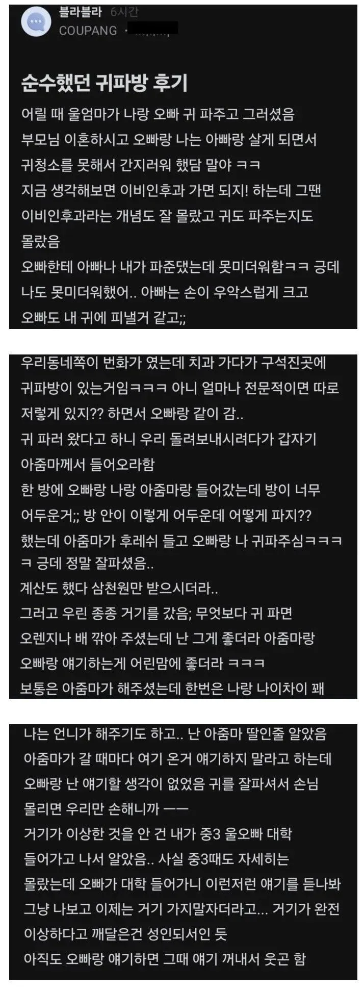귀파는방 솔직 순수한 후기