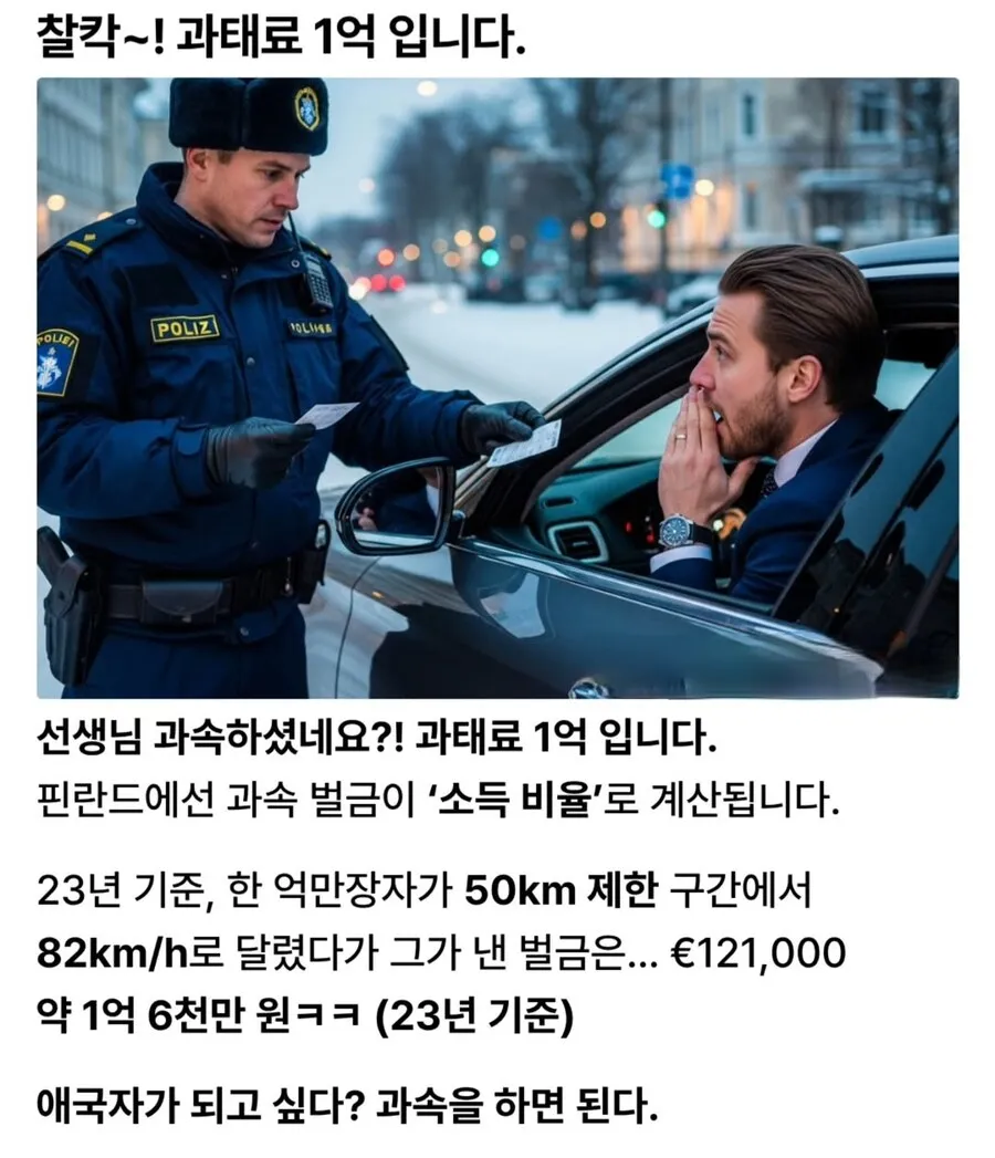 핀란드에서 과태료가 소득 비율로 매겨진다는 말이 아직 머릿속에 남아 있는데, 그게 정말 가능한지 궁금해.