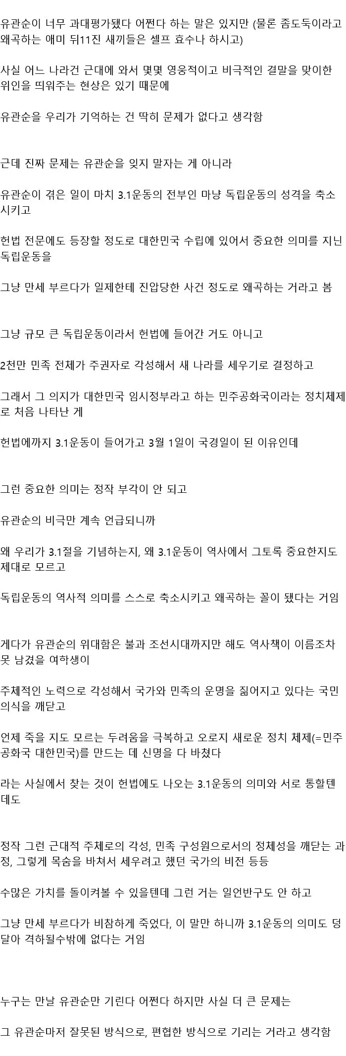 유관순을 기리는 방식과 접근법이 잘못 됐다 - o