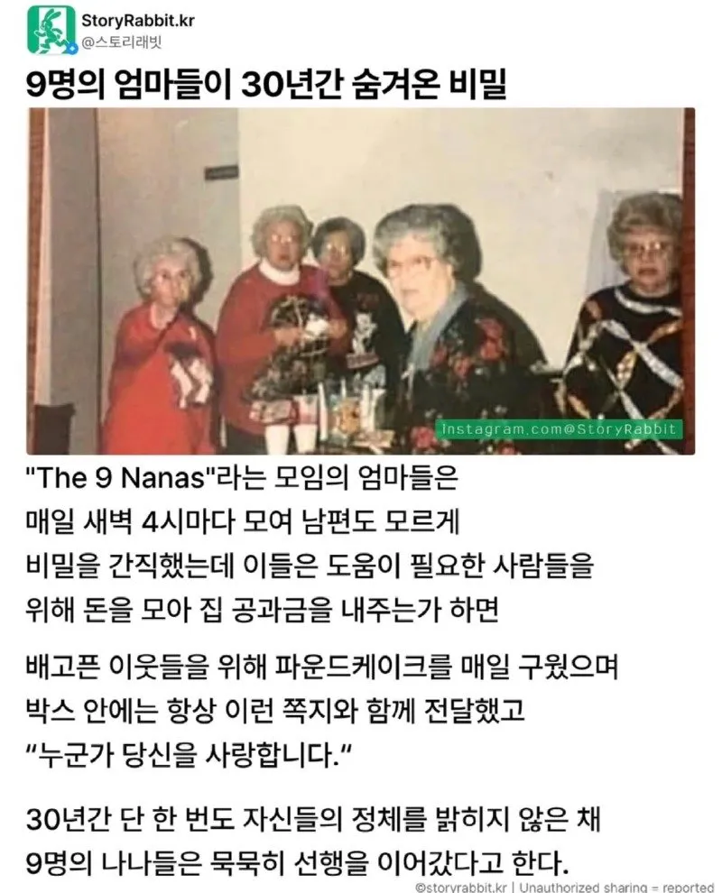 동네 카페에서 들려오는 소문이 오늘도 핫하더라. 9명의 엄마들이 30년 넘게 비밀을 지켜왔다던 이야기가 계속 돌고 있어. 이들이 남편도 모르게 자선 활동을 해왔고, 이웃의 집 공과금을 대신 낸다는 말이 그럴듯하게 들려. 파운드케이크를 매일 굽는다는 소문도 섞여 있는데, 진짜인지는 아무도 모르는 분위기야.