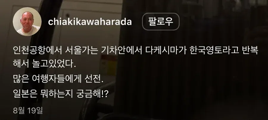 오늘 아침 열차 안에서 들은 방송 말이 아직도 머릿속을 맴돈다. 다케시마가 한국 영토라고 반복하던 내용이 떠올랐고, 주변 사람들의 표정이 확 달라졌다. 이게 실제로 일어났던 일인지 아니면 방송에서 과장한 소리인지 헷갈리면서도 분위기가 묘하게 예민했다. 무엇보다도 왜 지금 이 시점에 이런 이야기가 나오나 하는 의문이 들었다.