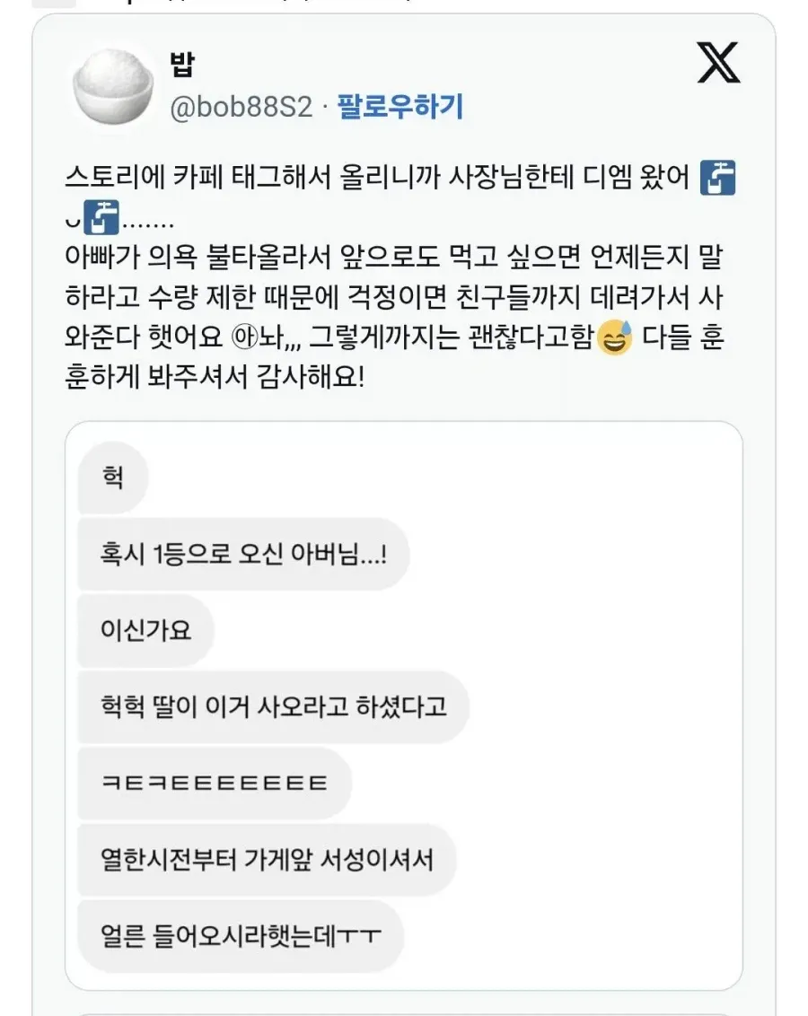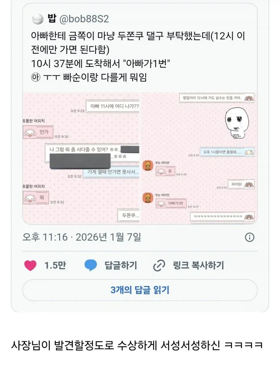 아빠한테 두쫀쿠 대리구매 부탁한 딸