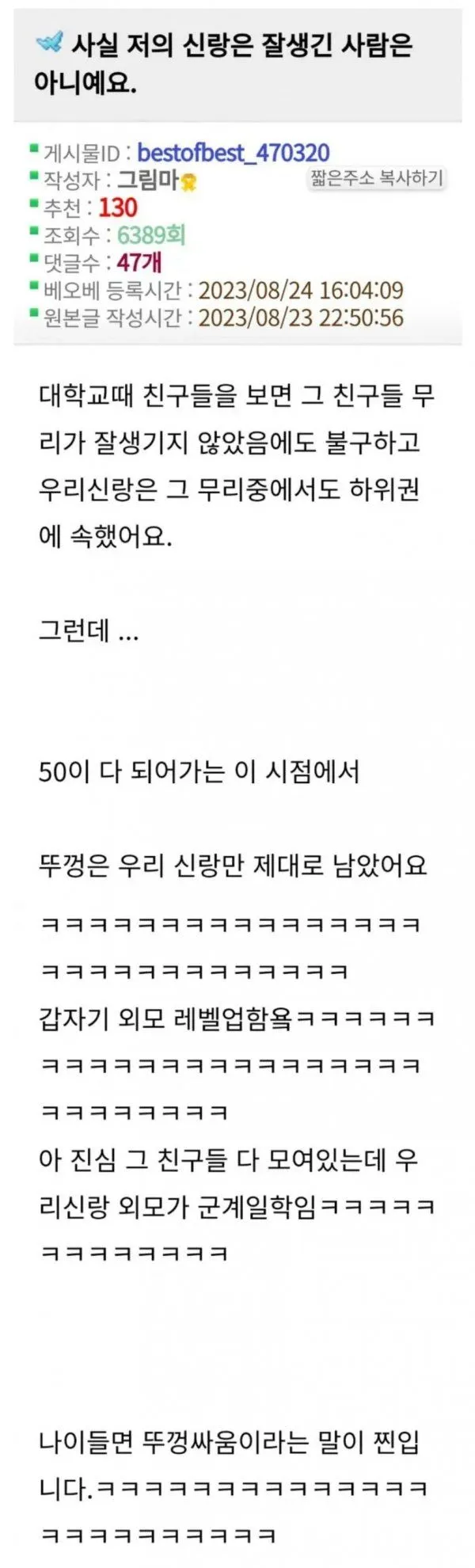 우리 동네 카톡방에서 요즘 남편이 갑자기 멋져 보인다는 소문이 돌고 있어. 사진도 본 것도 아닌데, 누가 봐도 외모 변화가 느껴진다며 추측들이 이어지는 분위기야. 나도 모르게 시선을 쏠리게 되고, 이게 정말인지, 아니면 동네 소문의 전형 같은 건지 헷갈려.