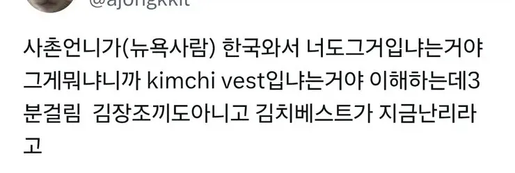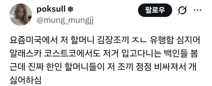 LA 코리아타운의 매장 진열대도 조금씩 반응하는 게 느껴져. 가격 인상 소문과 저가 버전이 섞여 나오면서 '이건 잠깐 스친 트렌드일까' 하는 의문도 남아. 아직 확실한 결론은 없지만 김장조끼가 추억거리에서 벗어나 1~2계절의 흐름으로 자리 잡는 중인 건 분명해 보인다. 앞으로 봄이 와도 분위기가 어떻게 흘러갈지 아직은 모른다.