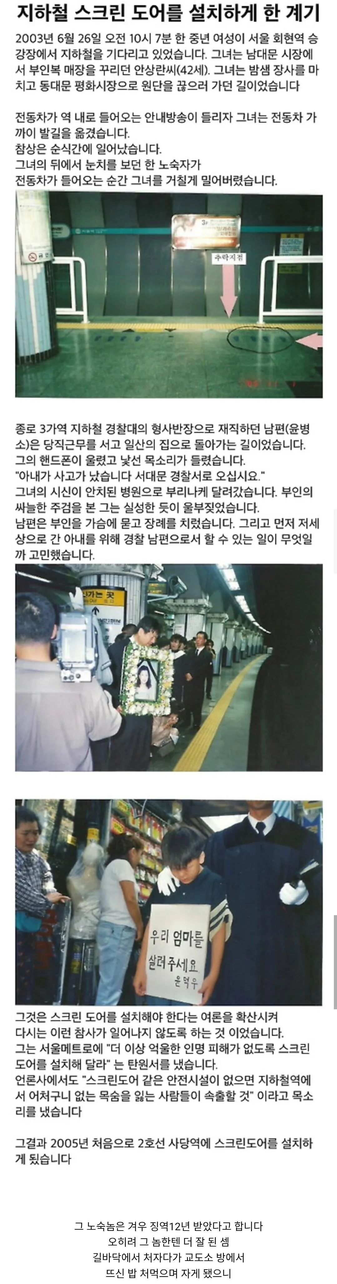 지하철 스크린도어가 설치된 이유