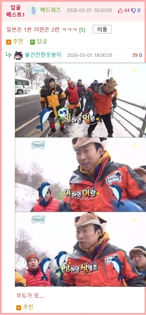 그래도 이 모든 게 우리 동네의 작은 거울 같아 보이기도 해. 사람들이 왜 이렇게 민감하게 반응하는지, 어떤 근거로 믿어야 할지 서로 묻고 답하려 애쓰는 모습이 보이거든. 아직 결론은 없는 것 같고, 이란과 항모, 일본 같은 키워드가 끝까지 우리 얘기를 따라다니는 걸로 남아 있어.