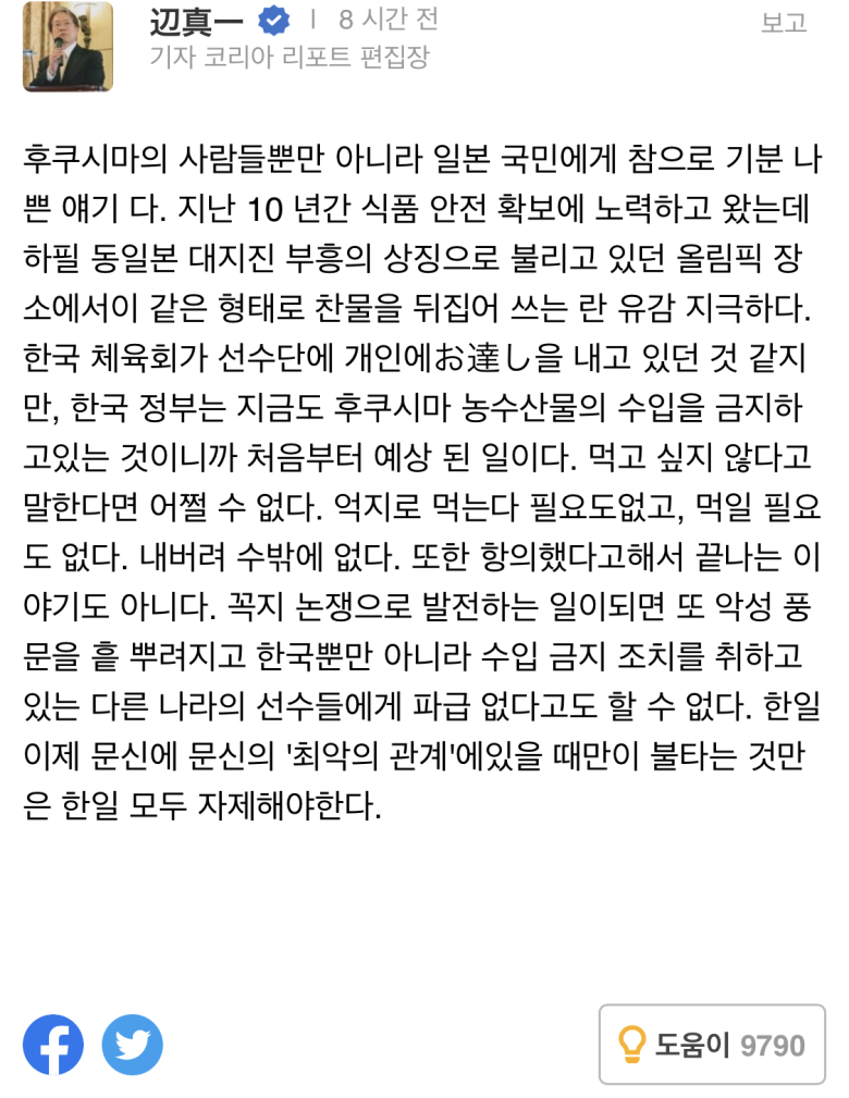 도쿄 올림픽 선수단 식당에서 후쿠시마 식재 거부한다고 난리인 닛뽕징들... doremi 쪽지보내기자기소개아이디로 검색전체게시물 07-18 4,375 회 0 건 https://www.dispatch.co.kr/1146992https://www.insight.co.kr/news/348991평창올림픽때는 따로 식당 만들어 운용한 놈들이 주둥이를 나불대는거 보면 참...그냥 쓰레기들이라고 밖에... 목록 이메일 주소는 공개되지 않습니다. 댓글 * 이름 * 비밀번호 * 비밀글 사용 제목 글쓴이 조회 날짜 일본식 거리두기 doremi 쪽지보내기자기소개아이디로 검색전체게시물 4,196 0 21-08-14 doremi 쪽지보내기자기소개아이디로 검색전체게시물 4,196 21-08-14 ??? : 이야 일본 폐막식 보다 우리가 더 잘하겠는데 몽비쥬 쪽지보내기자기소개아이디로 검색전체게시물 4,498 0 21-08-09 몽비쥬 쪽지보내기자기소개아이디로 검색전체게시물 4,498 21-08-09 안산이 이야기하는 김제덕 몽비쥬 쪽지보내기자기소개아이디로 검색전체게시물 4,574 0 21-08-07 몽비쥬 쪽지보내기자기소개아이디로 검색전체게시물 4,574 21-08-07 이란에서 보는 올림픽 중계 재미난도시락 쪽지보내기자기소개아이디로 검색전체게시물 4,627 0 21-08-04 재미난도시락 쪽지보내기자기소개아이디로 검색전체게시물 4,627 21-08-04 이번 여자배구 4강이 더욱 값진 이유 doremi 쪽지보내기자기소개아이디로 검색전체게시물 4,383 0 21-08-04 doremi 쪽지보내기자기소개아이디로 검색전체게시물 4,383 21-08-04 양궁 장혜진선수의 국궁체험 doremi 쪽지보내기자기소개아이디로 검색전체게시물 4,117 0 21-08-04 doremi 쪽지보내기자기소개아이디로 검색전체게시물 4,117 21-08-04 파리 올림픽이 기대되는 선수들 재미난도시락 쪽지보내기자기소개아이디로 검색전체게시물 4,272 0 21-08-01 재미난도시락 쪽지보내기자기소개아이디로 검색전체게시물 4,272 21-08-01 도쿄올림픽 야외수영장 근황 달콤별 쪽지보내기자기소개아이디로 검색전체게시물 4,334 0 21-07-28 달콤별 쪽지보내기자기소개아이디로 검색전체게시물 4,334 21-07-28 도쿄 올림픽 탁구장 상황 재미난도시락 쪽지보내기자기소개아이디로 검색전체게시물 4,560 0 21-07-23 재미난도시락 쪽지보내기자기소개아이디로 검색전체게시물 4,560 21-07-23 화기 전문가 특전사 가수 박군 몽비쥬 쪽지보내기자기소개아이디로 검색전체게시물 4,433 0 21-07-22 몽비쥬 쪽지보내기자기소개아이디로 검색전체게시물 4,433 21-07-22 한채영의 인성 doremi 쪽지보내기자기소개아이디로 검색전체게시물 4,719 0 21-07-20 doremi 쪽지보내기자기소개아이디로 검색전체게시물 4,719 21-07-20 여자들이 빵 터지는 유머 달콤별 쪽지보내기자기소개아이디로 검색전체게시물 4,498 0 21-07-19 달콤별 쪽지보내기자기소개아이디로 검색전체게시물 4,498 21-07-19 선배 한의사 저격하는 한의사 몽비쥬 쪽지보내기자기소개아이디로 검색전체게시물 4,224 0 21-07-18 몽비쥬 쪽지보내기자기소개아이디로 검색전체게시물 4,224 21-07-18 ⭐ 도쿄 올림픽 선수단 식당에서 후쿠시마 식재 거부한다고 난리인 닛뽕징들... doremi 쪽지보내기자기소개아이디로 검색전체게시물 4,376 0 21-07-18 doremi 쪽지보내기자기소개아이디로 검색전체게시물 4,376 21-07-18 SK하이닉스 위엄 재미난도시락 쪽지보내기자기소개아이디로 검색전체게시물 4,696 0 21-07-17 재미난도시락 쪽지보내기자기소개아이디로 검색전체게시물 4,696 21-07-17 시내버스 좌석이 뒤집힌 이유 몽비쥬 쪽지보내기자기소개아이디로 검색전체게시물 5,052 0 21-07-14 몽비쥬 쪽지보내기자기소개아이디로 검색전체게시물 5,052 21-07-14 박지희 아나운서 7월13일자 일침 몽비쥬 쪽지보내기자기소개아이디로 검색전체게시물 7,068 0 21-07-14 몽비쥬 쪽지보내기자기소개아이디로 검색전체게시물 7,068 21-07-14 재난지원금 사태 요약 재미난도시락 쪽지보내기자기소개아이디로 검색전체게시물 4,569 0 21-07-13 재미난도시락 쪽지보내기자기소개아이디로 검색전체게시물 4,569 21-07-13 설정과 실제의 차이 doremi 쪽지보내기자기소개아이디로 검색전체게시물 4,106 0 21-07-13 doremi 쪽지보내기자기소개아이디로 검색전체게시물 4,106 21-07-13 현 시각 폭풍우 후 대구 신천 상태 doremi 쪽지보내기자기소개아이디로 검색전체게시물 4,154 0 21-07-13 doremi 쪽지보내기자기소개아이디로 검색전체게시물 4,154 21-07-13 미국 스쿨버스 시동 끄는 법 doremi 쪽지보내기자기소개아이디로 검색전체게시물 4,595 0 21-07-12 doremi 쪽지보내기자기소개아이디로 검색전체게시물 4,595 21-07-12 한국에서 죽을뻔한 해외 파쿠르 고수 달콤별 쪽지보내기자기소개아이디로 검색전체게시물 4,448 0 21-07-12 달콤별 쪽지보내기자기소개아이디로 검색전체게시물 4,448 21-07-12 전세계 점유율 90% 한국제품 재미난도시락 쪽지보내기자기소개아이디로 검색전체게시물 4,300 0 21-07-09 재미난도시락 쪽지보내기자기소개아이디로 검색전체게시물 4,300 21-07-09 오세훈 긴급 브리핑 재미난도시락 쪽지보내기자기소개아이디로 검색전체게시물 4,243 0 21-07-08 재미난도시락 쪽지보내기자기소개아이디로 검색전체게시물 4,243 21-07-08 한국인이 중국을 왜 싫어하냐고? 재미난도시락 쪽지보내기자기소개아이디로 검색전체게시물 4,753 0 21-07-08 재미난도시락 쪽지보내기자기