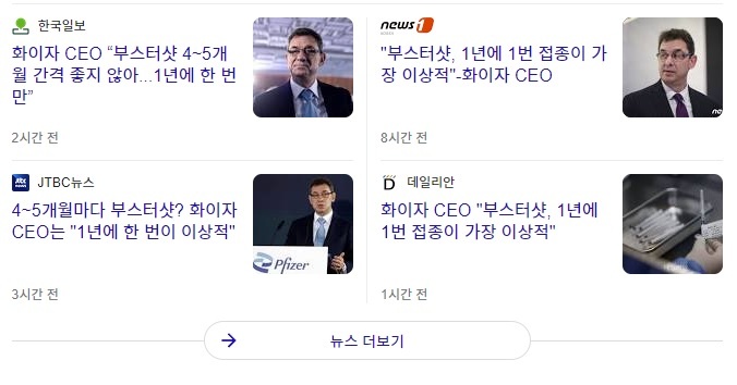 화이자 CEO가 '부스터샷은 1년에 1번이 이상적' 이라는 기사가 오늘 여기저기서 쏟아졌습니다.