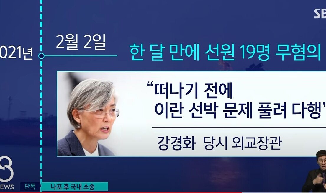 그러면서 강경화 외교장관은 퇴임전에 이란 선박 문제가 전부 해결되어서 다행이다. 라고 했다.