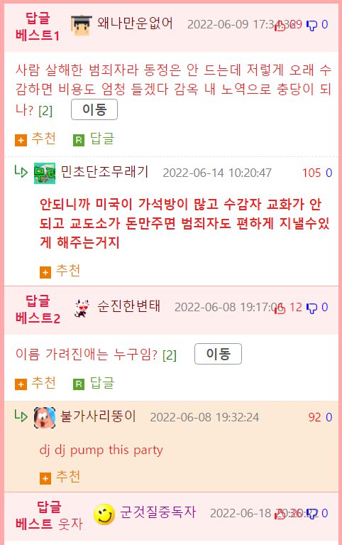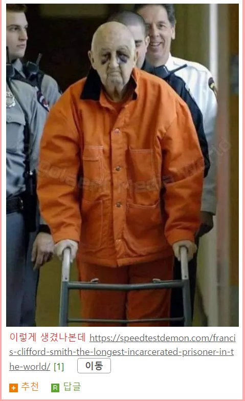 미국에서 72년간 교도소 수감중인 살인자 도레미 쪽지보내기자기소개아이디로 검색전체게시물 06-21 4,603 회 0 건 본문 기사 번역해 보면 2020년 9월에 요양원으로 '감독 가석방(supervised parole)' 되었다고 합니다.가석방 제안 시 처음엔 나가기를 꺼리다가 요양원으로 가는 걸 수락했다고. 이 요양원이 주립 요양원이고 노인 가석방자를 위한 거라 본문에 교도소 내 양로원으로 표현하고 있는 것 같습니다. 목록 이메일 주소는 공개되지 않습니다. 댓글 * 이름 * 비밀번호 * 비밀글 사용 제목 글쓴이 조회 날짜 중국 부동산발 위기 시작되나? ..투신 소동잇따라 도레미 쪽지보내기자기소개아이디로 검색전체게시물 3,962 0 22-08-07 도레미 쪽지보내기자기소개아이디로 검색전체게시물 3,962 22-08-07 대형 로펌의 우영우 변호사도 피해가지 못한... 재미난도시락 쪽지보내기자기소개아이디로 검색전체게시물 4,717 0 22-08-07 재미난도시락 쪽지보내기자기소개아이디로 검색전체게시물 4,717 22-08-07 대한민국 예능이 망하기 시작한 시점 도레미 쪽지보내기자기소개아이디로 검색전체게시물 4,564 0 22-08-03 도레미 쪽지보내기자기소개아이디로 검색전체게시물 4,564 22-08-03 변호사가 말하는 현실판 우영우 재미난도시락 쪽지보내기자기소개아이디로 검색전체게시물 4,107 0 22-08-02 재미난도시락 쪽지보내기자기소개아이디로 검색전체게시물 4,107 22-08-02 무적의 '반창고 백신' 나오나…'오미크론까지 19종 변이에 효과' 몽비쥬 쪽지보내기자기소개아이디로 검색전체게시물 3,916 0 22-07-29 몽비쥬 쪽지보내기자기소개아이디로 검색전체게시물 3,916 22-07-29 과수원을 하다 수천억원대 부자가 된 부부 몽비쥬 쪽지보내기자기소개아이디로 검색전체게시물 4,484 0 22-07-28 몽비쥬 쪽지보내기자기소개아이디로 검색전체게시물 4,484 22-07-28 소녀시대는 완전히 끝났구나 달콤별 쪽지보내기자기소개아이디로 검색전체게시물 6,534 0 22-07-28 달콤별 쪽지보내기자기소개아이디로 검색전체게시물 6,534 22-07-28 1950년대 한국 컬러 사진 도레미 쪽지보내기자기소개아이디로 검색전체게시물 4,315 0 22-07-25 도레미 쪽지보내기자기소개아이디로 검색전체게시물 4,315 22-07-25 폴란드 공군 장성이 밝힌 FA-50 도입 관련 이야기 달콤별 쪽지보내기자기소개아이디로 검색전체게시물 4,299 0 22-07-23 달콤별 쪽지보내기자기소개아이디로 검색전체게시물 4,299 22-07-23 안드로이드 노바 런처, 데이터 측정 업체 브랜치가 인수 달콤별 쪽지보내기자기소개아이디로 검색전체게시물 4,395 0 22-07-20 달콤별 쪽지보내기자기소개아이디로 검색전체게시물 4,395 22-07-20 법원이 LCT 레지던스 주거는 불법인데 주거권을 인정해줬습니다. 달콤별 쪽지보내기자기소개아이디로 검색전체게시물 4,518 0 22-07-17 달콤별 쪽지보내기자기소개아이디로 검색전체게시물 4,518 22-07-17 포터 vs 포르쉐 몽비쥬 쪽지보내기자기소개아이디로 검색전체게시물 4,410 0 22-07-17 몽비쥬 쪽지보내기자기소개아이디로 검색전체게시물 4,410 22-07-17 125조 투입 원금에 90프로 빚탕감 정책나왔네요.. 몽비쥬 쪽지보내기자기소개아이디로 검색전체게시물 4,651 0 22-07-15 몽비쥬 쪽지보내기자기소개아이디로 검색전체게시물 4,651 22-07-15 미항공우주국 NASA는 PC에 동조하지 않았음.. 도레미 쪽지보내기자기소개아이디로 검색전체게시물 3,985 0 22-07-13 도레미 쪽지보내기자기소개아이디로 검색전체게시물 3,985 22-07-13 연매출 165억 약국 CEO 누나 재미난도시락 쪽지보내기자기소개아이디로 검색전체게시물 4,598 0 22-07-13 재미난도시락 쪽지보내기자기소개아이디로 검색전체게시물 4,598 22-07-13 군대 가겠다고 하고 외국으로 튄 석현준 근황 달콤별 쪽지보내기자기소개아이디로 검색전체게시물 4,362 0 22-07-10 달콤별 쪽지보내기자기소개아이디로 검색전체게시물 4,362 22-07-10 안동 칼부림 사건 전말 도레미 쪽지보내기자기소개아이디로 검색전체게시물 5,644 0 22-07-08 도레미 쪽지보내기자기소개아이디로 검색전체게시물 5,644 22-07-08 28살 신인 여배우의 첫 방한 도레미 쪽지보내기자기소개아이디로 검색전체게시물 5,257 0 22-07-08 도레미 쪽지보내기자기소개아이디로 검색전체게시물 5,257 22-07-08 국제적 바보가 되어버린 채연 도레미 쪽지보내기자기소개아이디로 검색전체게시물 9,191 0 22-06-30 도레미 쪽지보내기자기소개아이디로 검색전체게시물 9,191 22-06-30 대한민국 라면계에서 사라져야 할 악습 재미난도시락 쪽지보내기자기소개아이디로 검색전체게시물 5,264 0 22-06-29 재미난도시락 쪽지보내기자기소개아이디로 검색전체게시물 5,264 22-06-29 개그판에서 코미디빅리그만 살아남은 이유 몽비쥬 쪽지보내기자기소개아이디로 검색전체게시물 4,768 0 22-06-28 몽비쥬 쪽지보내기자기소개아이디로 검색전체게시물 4,768 22-06-28 국가대표 선출 플랭크 대결 ㄷㄷㄷㄷ 몽비쥬 쪽지보내기자기소개아이디로 검색전체게시물 4,460 0 22-06-27 몽비쥬 쪽지보내기자기소개아이디로 검색전체게시물 4,460 22-06-27 골목식당 덮죽 사장님 근황 도레미 쪽지보내기자기소개아이디로 검색전체게시물 4,634 0 22-06-24 도레미 쪽지보내기자기소개아이디로 검색전체게시물 4,634 22-06-24 ⭐ 미국