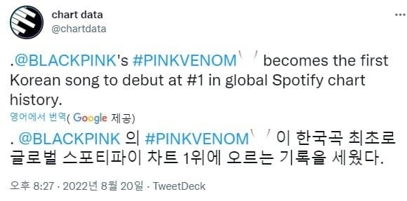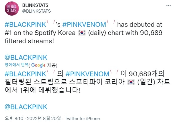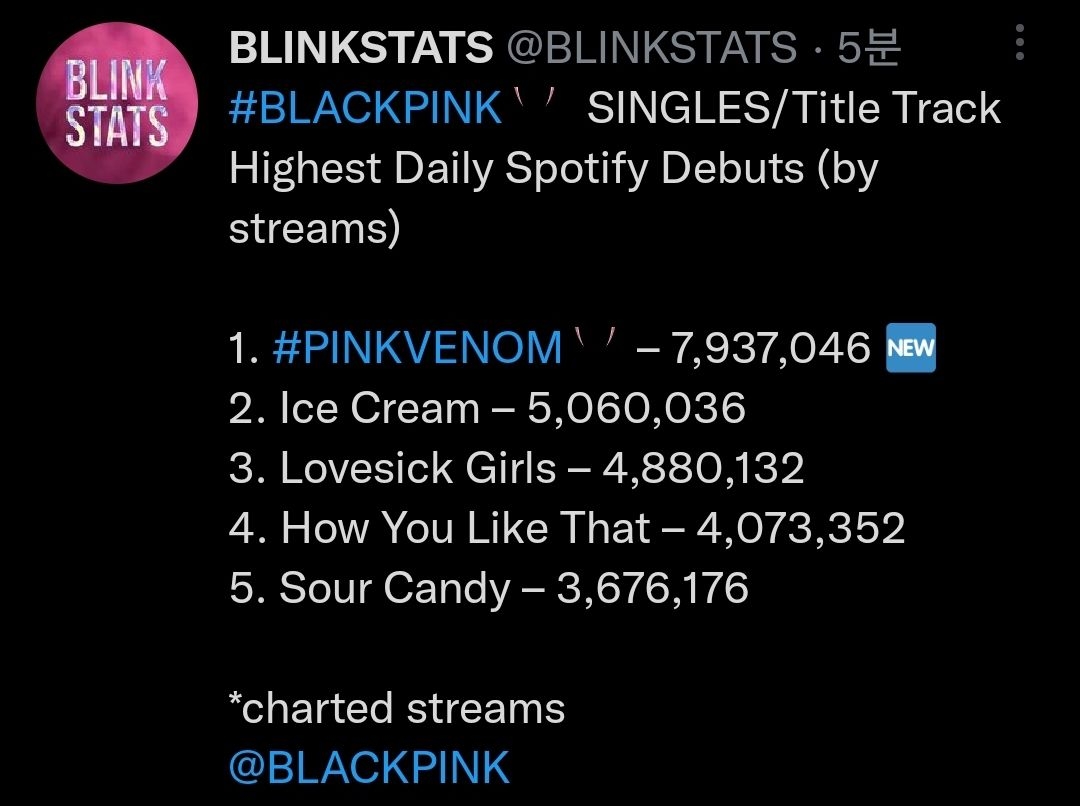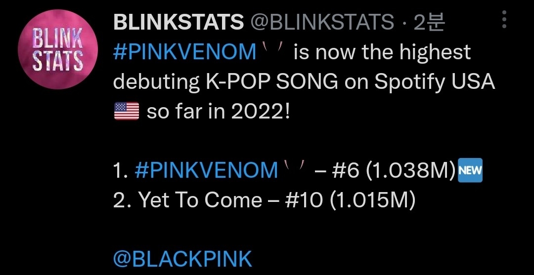 블랙핑크 스포티파이 1위