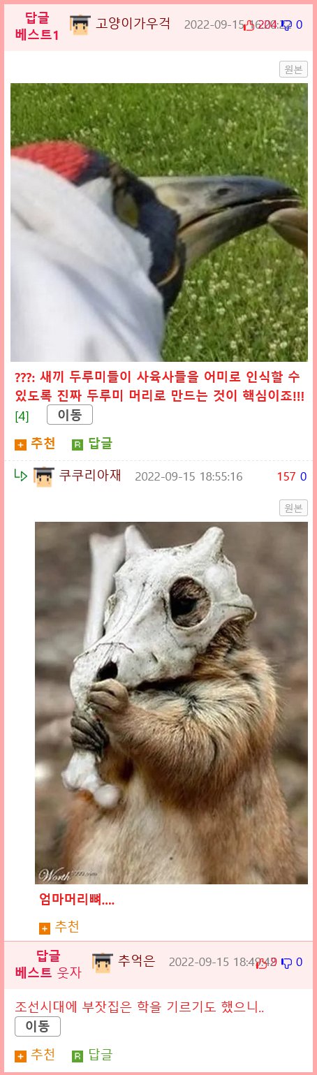 다른 베스트 답글에서는 말장난을 하며 "엄마머리뼈....."라고 유머를 던지는 내용입니다.
