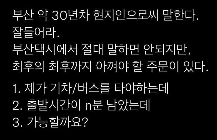 Grin @evergrin, 버스나 기차를 타야하는데 출발 시간이 얼마 남지 않았을 때 부산택시에서는 말하면 안 되는 주문이 있습니다. 이건 부산에서 30년차 현지인으로서 말하는 솔직한 이야기입니다.