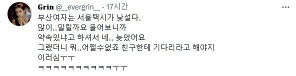 부산여자는 서울택시가 낯설다. 많이..밀릴까요 물어보니까 약속있냐고 하셔서 네.. 늦었어요 그랬더니 뭐..어쩔수없죠 친구한테 기다리라고 해야지 이러심ㅜㅜ ㅋㅋㅋㅋㅋㅋㅋㅋㅋㅋㅜㅜ