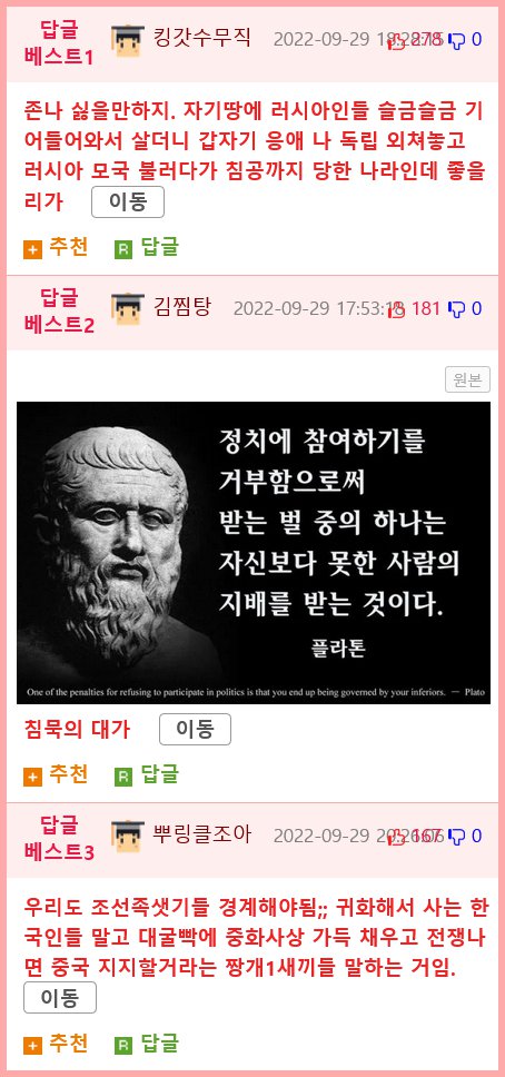 이 글은 러시아와 관련된 다양한 의견과 감정이 혼재되어 있습니다. 한 사람은 러시아인들이 다른 나라로 떠나는 이유를 질문하며, 다른 사람은 러시아를 침략자로 보고 푸틴을 테러리스트로 비난합니다. 또 다른 사람은 러시아 망명자들을 환영하지 않고, 자국의 러시아인들도 싫어하는 것을 표현합니다. 또한, 조작된 투표와 주민투표의 결과, 러시아 점령지의 합병 등에 대한 의견도 나타납니다. 이 글은 다양한 정치적 견해를 담고 있지만, 그 중에는 플라톤의 명언도 포함되어 있습니다.