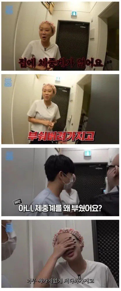 집에 체중계가 없어서 뭐야, 체중계를 부셨어? 그걸 왜 부셨어?