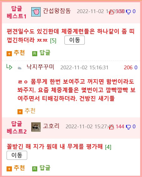 LD B 편견일수도 있긴한데 체중계련들은 하나같이 좀 띠 껍긴 하더라고.ㅉㅉ [5]