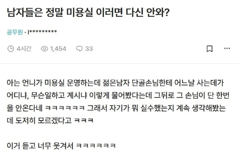 남자들은 정말 미용실 이러면 다신 안와?