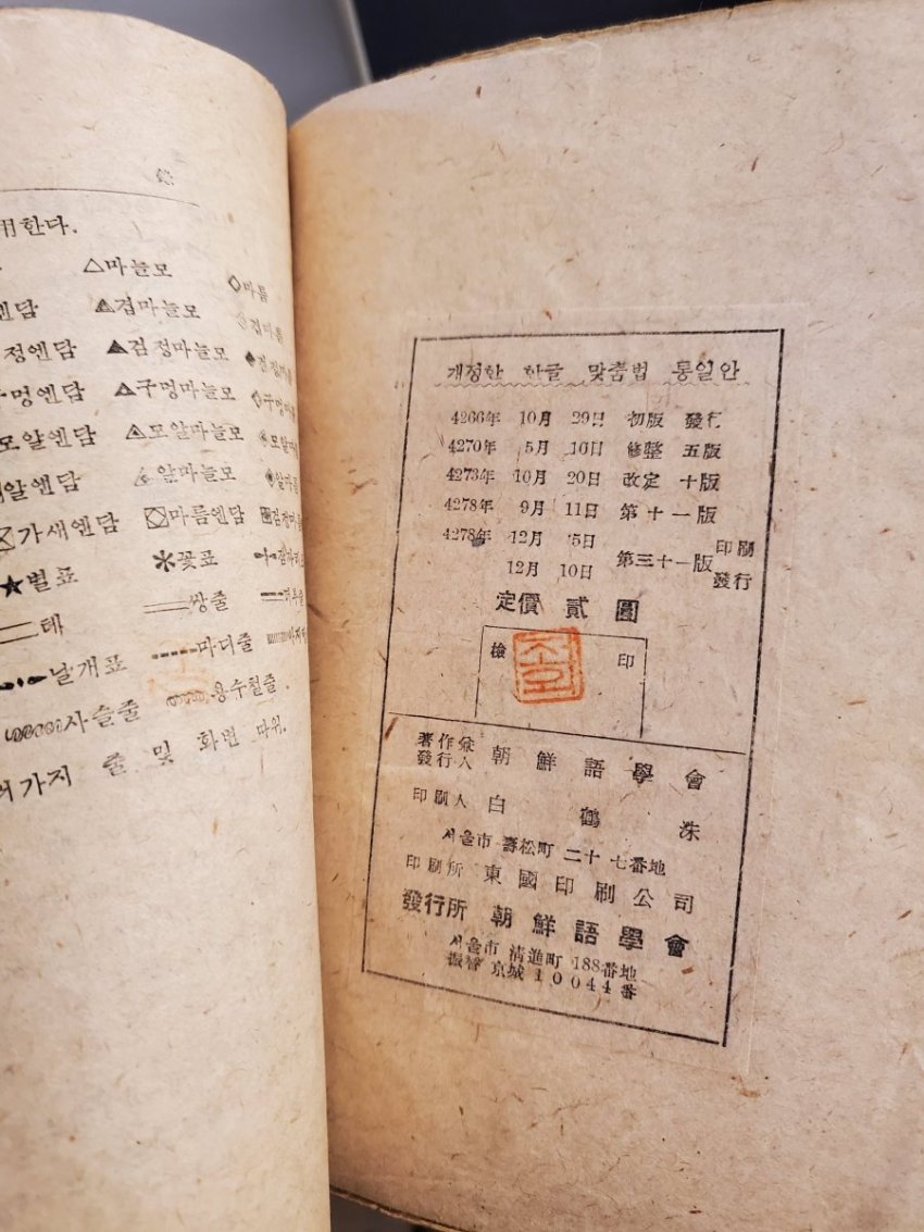 《개정 한글 맞춤법 통일안》은 4266년 10월 29일에 발행되었으며, 4270년 5월 10일에 10대로 업데이트되었습니다. 이후 42734년, 4278년 10월 20일에는 개정판이 발행되었고, 9월 11일에는 11판, 12월에는 12판이 발행되었습니다. 이 책은 서울시 성태리동 27번지에 위치한 동국태리소파 인쇄소에서 인쇄되었으며, 발행은 서울의 188지 우리말본 발행소에서 이루어졌습니다. 해당 책은 2원에 판매되고 있으며, 지은이는 최현배이고 발행인은 태림입니다. 이 책은 朝鮮語學會 (조선어학회)에서 발행되었습니다.