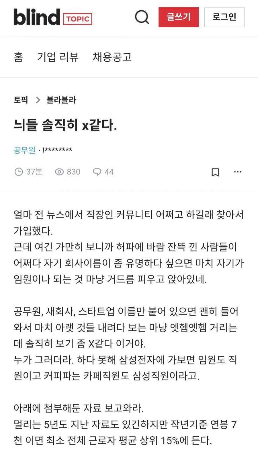 블라인드 논란중인 공무원이 말하는 현실. jpg