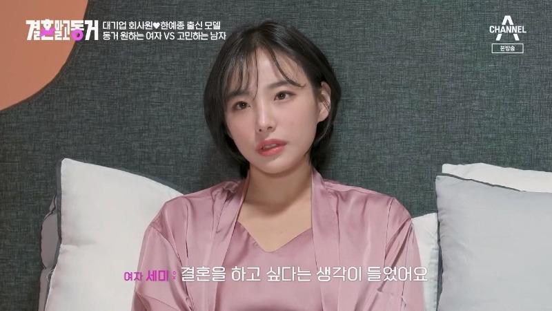 한예종 출신 모델이 결혼하고 동거를 원하는 여자와 고민하는 남자의 이야기입니다. 여자는 결혼 앞자리에 2가 달려있을 때 결혼하고 싶어하며, 결혼보다는 동거를 원하는 성향을 가지고 있습니다. 그녀는 대기업 회사원이자 한예종 출신 모델입니다. 한편, 남자는 결혼보다는 동거에 대해 고민하고 있습니다. 그는 대기업 회사원과 한예종 출신 모델과의 동거를 원하는 여자의 조건에 대해 고민하고 있습니다. 주요 조건은 세미 4년제 대학 졸업, 나이 23~26살, 얼굴이 예쁘고 대기업 회사원이며 한예종 출신 모델이어야 합니다. 여자 세미는 사회적으로 높은 위치에서 낮은 위치로 내려가는 상황을 경험하고 있으며, 결혼보다는 동거를 원하는 이유를 설명하고 있습니다. 이러한 상황에서 결혼을 하고 싶은 생각이 들었다고 합니다.