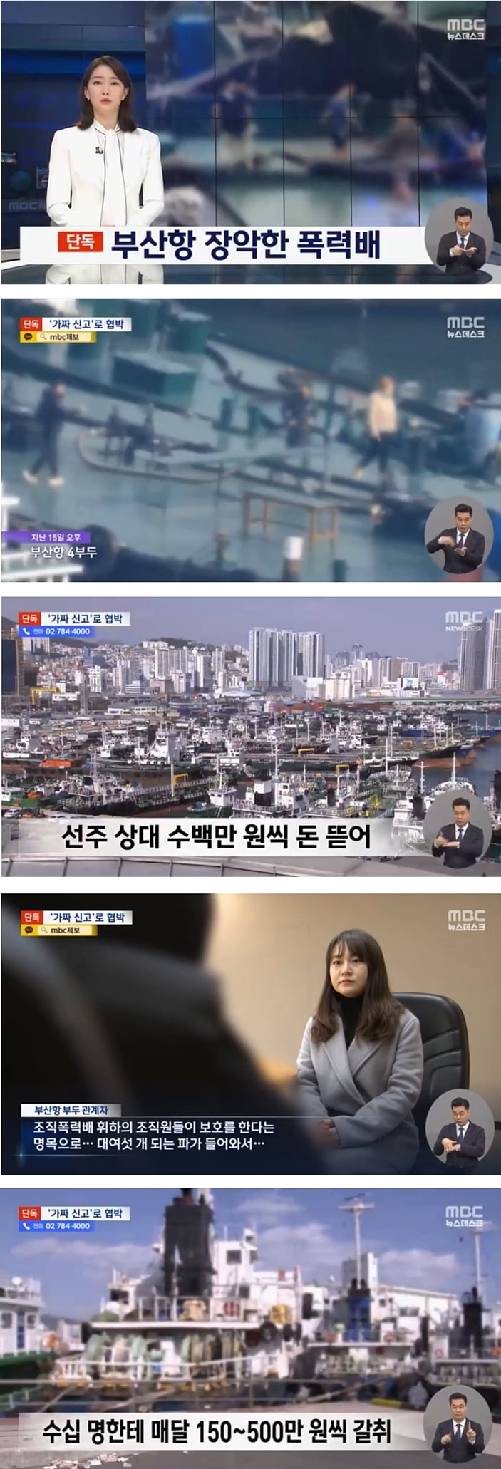 MOCN에서 단독으로 보도한 부산항에서 일어난 폭력배들의 가짜 신고로 인한 협박 사건에 대해 알려드리겠습니다. 지난 15일 오후, 부산항 부두에서 가짜 신고로 협박 사건이 발생했습니다. 이 사건은 Pantin 선주에게 피해를 입히며 수백만 원을 갈취한 것으로 알려져 있습니다. 추가적으로, mbc 부산항 부두관계자는 조직폭력배 휘하의 조직원들이 보호를 하고 있다는 명목으로 가짜 신고를 한 것으로 밝혀졌습니다. 이 협박 사건은 전화번호 02-784-4000을 이용해 수십 명에게 매달 150~500만 원씩 갈취되었습니다. 해당 선박 관계자는 "그렇지 않으면 일을 못 한다"는 식으로 협박을 받았다고 진술했습니다. mbc는 "해경에 신고하겠다"며 공갈 협박을 덮는 것으로 알려져 있습니다. 경찰은 허위 신고라도 현장에 나가서 확인해야 할 의무가 있다고 밝혔습니다. 이로 인해 시간이 많이 걸렸으며, 이 사건을 악용하려는 사람들에게도 지장이 있었습니다. 이 사건에 대한 정확한 판단을 위해 부산동부경찰서가 관련 업체에 대한 영상취재를 실시했습니다. 이와 관련하여 부산 MBC 뉴스데스크에서 이경수 기자가 보도하였습니다.