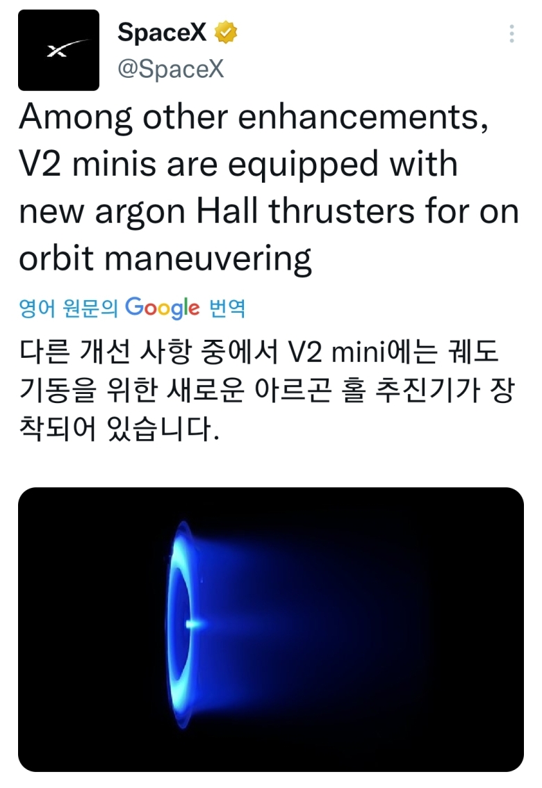 혹용 시작하는데 새로운 아르곤 홀스터를 사용하여 우주에서의 조종이 가능합니다. Overall, the V2 Mini satellites, also known as "V2 Minis," are a significant advancement in Starlink's capabilities. These satellites feature more powerful phased array antennas and utilize E-band technology for backhaul, allowing for a four-fold increase in capacity compared to previous iterations. As a result, Starlink can deliver more bandwidth with enhanced reliability, enabling SpaceX to connect millions more people across the globe to high-speed internet. Additionally, the V2 Minis are equipped with new argon Hall thrusters for maneuvering in orbit. With these advancements, Starlink is set to revolutionize global connectivity and bridge the digital divide.