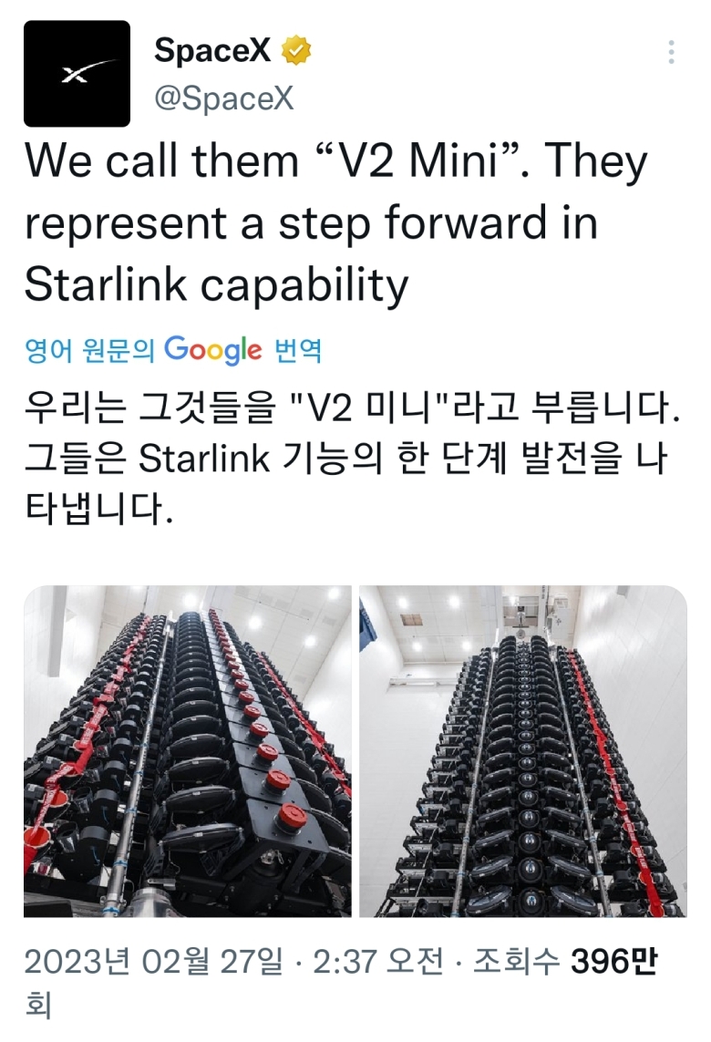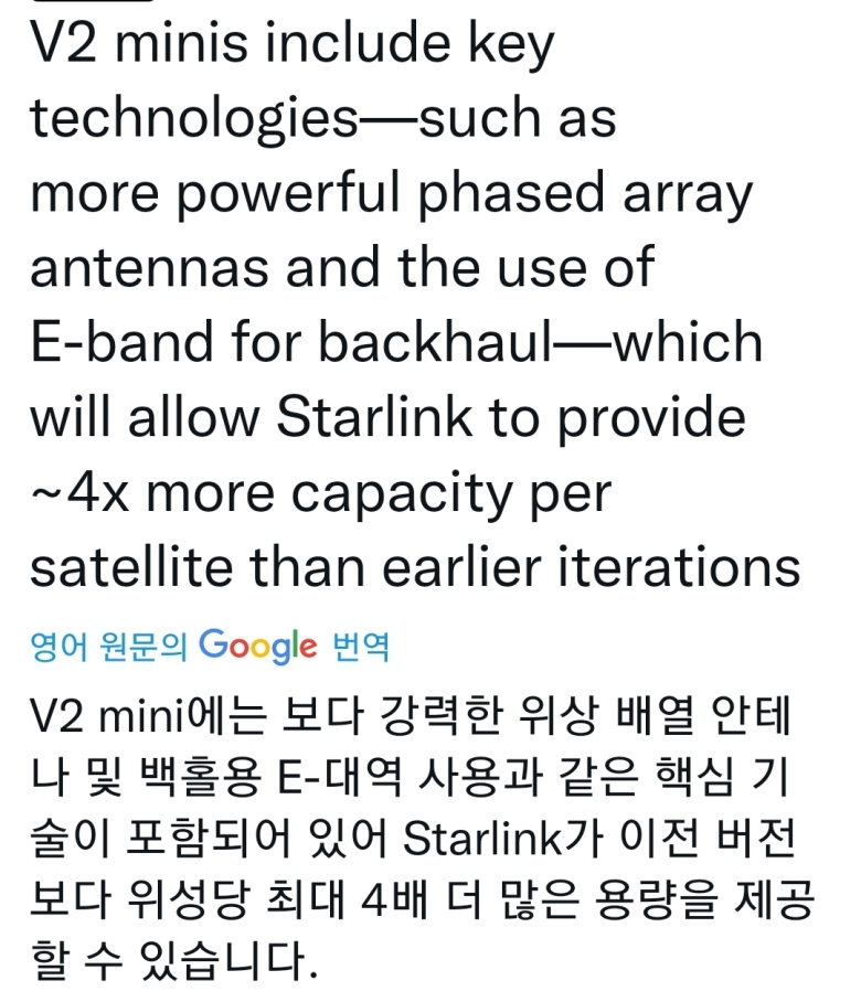 스타링크 2세대 위성 사양 공개