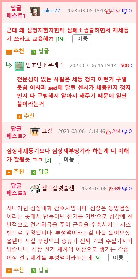 이후 공개된 후속글에서는 심장충격기가 심정지 상태인 사람을 살릴 수 없고, 심정지 상태일 때 제세동기를 사용하는 것은 불가능하다고 명시되었다. 다른 댓글에서는 이러한 내용은 과학적 사실임을 지적하고, 글 작성자의 발언에 대한 비판도 나왔다. 이에 글 작성자는 비난하고 자신의 발언을 고소당할 수 있다고 대답했다.