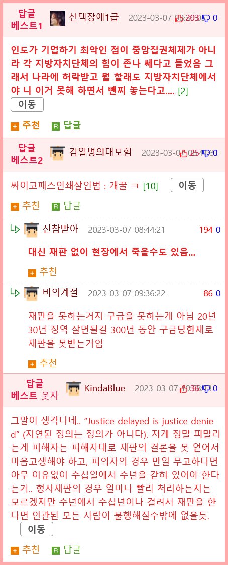 인도의 기업 환경은 최악이다. 각 지방 자치 단체에서는 나라에 허야니 이 못해하고 이동하기도 한다. SHURE LD 신참이 답글 베스트 1과 답글 베스트 2에 추천되었고, 재천에도 인기가 많다. 이동이 웃으면서 추천을 보내기도 했다. 재판의 총수가 5,000만 건을 넘었는데 SHURE 대신에 재추천 LD 비의 계절 자 SHURE가 30년 동안 지방법원과 고등법원에 계류되어 있고, 현재는 지방법원에 계류 중이다. 인도는 전 세계 최대 규모의 재판을 기록하고있다. 하지만 선택장애 1급인 것 같아서 받아주기 힘들다. 이동은 단체의 받아주지 않는 판결에 대해 싸이코패스 연쇄살인범처럼 큰 기쁨을 느낀다. 점이 중앙집권체제가 아닌 것 같아 놀랐다. 뭘 할래도 지방자치단체에서 고집 놓고 싸우고 있다고 한다. 재판을 못하는 것이 관건이고 구금을 못하는 것은 아니라고한다. 대부분의 재판이 지체되고 있고, 그 중에서도 169,000건이 밀려있어서 324년이 걸릴 것이라고 한다. 현장에서 죽을 수도 있으니 이는 정말 피말리는 상황이다. 피해자는 피해자대로 얻은 의자에서 무고하다면 일 마음으로 고통을 겪어야 한다. 그리고 피는 아무 이유없이 수십일에서 수년간 형사재판에 갇힐 것이다. 이는 피해자들에게는 지옥과도 같은 상황일 것이다. 그래도 얼마나 빨리 처리되는지는 수십년이 걸릴지도 모른다. 연관된 모든 사건들도 장기간에 걸쳐서 재판되는 경우가 많다.