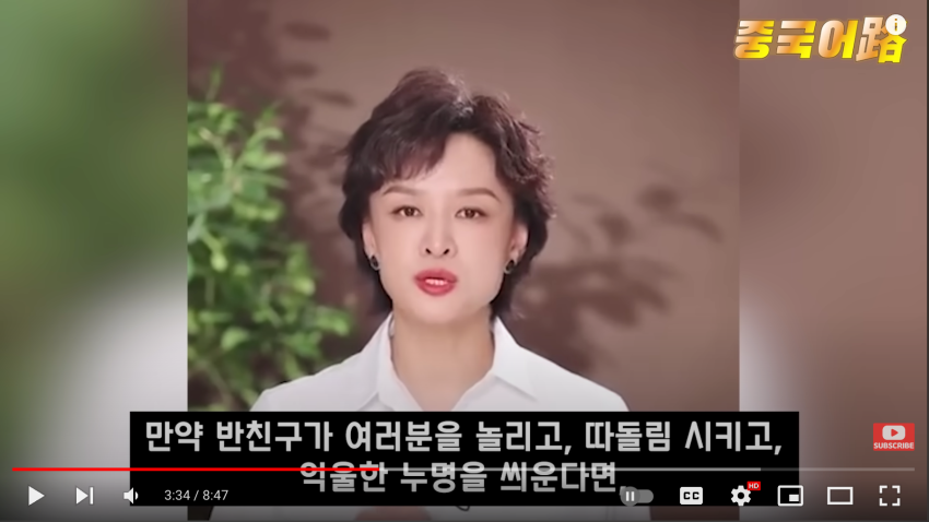 중국에서도 골칫거리인 학폭 예방을 위해 공익광고를 내고 있다. 만약 반친구가 여러분을 놀리고 따돌림시키며 억울한 누명을 씌운다면 12355로 전화해 청소년 권익보호 및 심리자문센터에서 도움을 받을 수 있다. 담당자들은 가해자들에게 교육을 실시할 것이다.