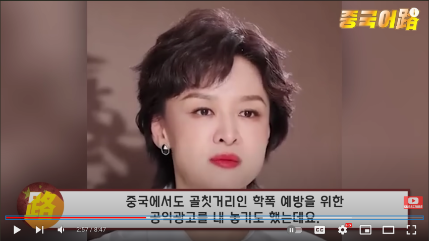 넷플릭스의 진출을 막고 있고 더 글로리를 방법으로 수출입한 적도 없는 중국의 공영방송 CCTV에서 더 글로리 시청소감과 학폭예방 공익광고를 방송했답니다.