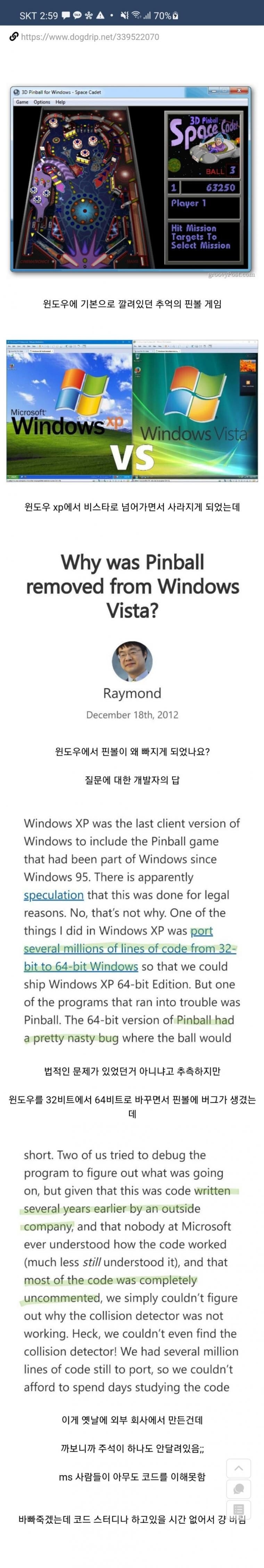 rs ago by a team that no longer existed, it was quite challenging. Eventually, we decided that it would be easier to just remove Pinball from Windows Vista instead of trying to fix the bug.