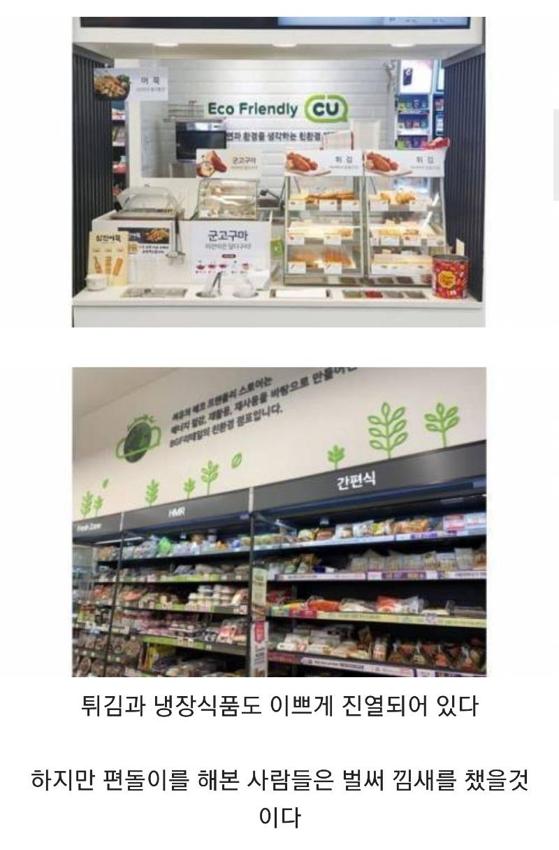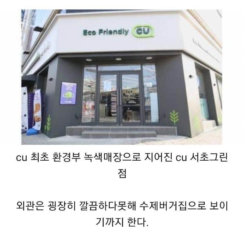 CU 서초그린점은 최초로 환경부에서 인증한 녹색매장으로, 외관은 매우 깔끔하고 수제버거집처럼 보인다. 어묵과 튀김, 냉장식품도 아름답게 진열되어 있다. 하지만 편돌이를 해본 사람들은 이미 CU 편돌이의 낌새를 챘을 것이다. CU 서초그린점은 Eco Friendly를 추구하는 공산품을 세공심보로 판매하고 있다. 스토어는 깨너지 절단, 재물운, 재사용을 기반으로 만들어진 BGF리테일의 친환경 매장이다. 하루에 들어오는 물건 중 담배만 세박스이며, 박스는 BGF로지스의 파산으로 금지된 용도로 사용되며 아동내역은 전산으로 관리된다. CU 서초그린점은 주말에는 시급이 더 많이 되는 시간대에 알바를 뽑고 있으며, 평일에는 간편식을 판매하고 있다. CU 서초그린점의 창고는 외관에 비해 못생겼고, 박스의 잘린 면을 보면 2층도 있는 것을 알 수 있다. 이 가게는 위험이 정말 높은 수준의 하루 금고보관액이 있으며, 현금 계산은 12/12 CHOS에서 이루어진다.