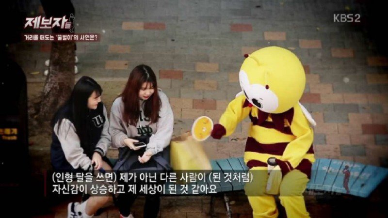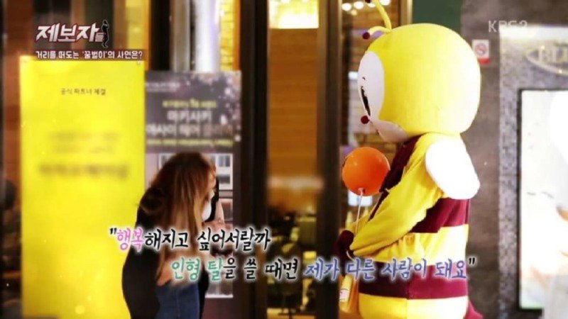 한 여성이 제보한 이야기입니다. 거리를 떠도는 꿀벌이라는 이름으로 알려진 한 사람의 이야기입니다. 이 사람은 일산 주변에서 연예인으로 알려져 있습니다. 이 사람은 자신에게 인형 탈을 쓰면 다른 사람이 된 것처럼 자신감이 상승하고 자신의 세상이 된 것 같다고 합니다. 공식 파트너도 체결했다고 합니다. 하지만 이 인형 탈을 쓰는 것은 소심한 사람이었을 때의 이야기로부터 시작되었습니다. 경제적 문제로 인해 부모와 다투며 살다가 큰 문제로 이어졌습니다. 그 뒤로 이 사람은 인형 탈 벌이가 되었고, 사람들에게 사랑 받을 일도 없어 쓴 을 날 좋아하는 힘이 난다고 합니다. 현재는 30대라고 합니다. 제보자는 이 이야기를 인터넷에서 찾아봤고, 이 사람이 어릴적부터 개인적인 문제와 관계에 얽매인 삶을 살아온 것 같다고 말했습니다. 이 사람에게 도움을 줄 수 있는 방법이 없을까 고민하며 눈물을 흘렸다는 얘기도 있습니다.