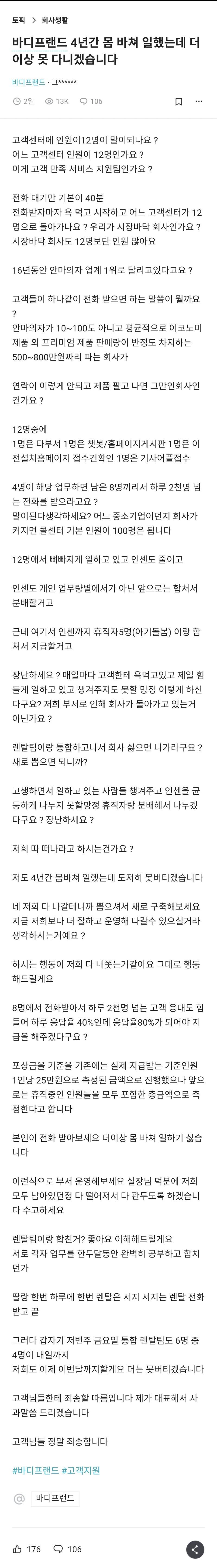 바디프렌드 직원이 폭로하는 고객센터 현실